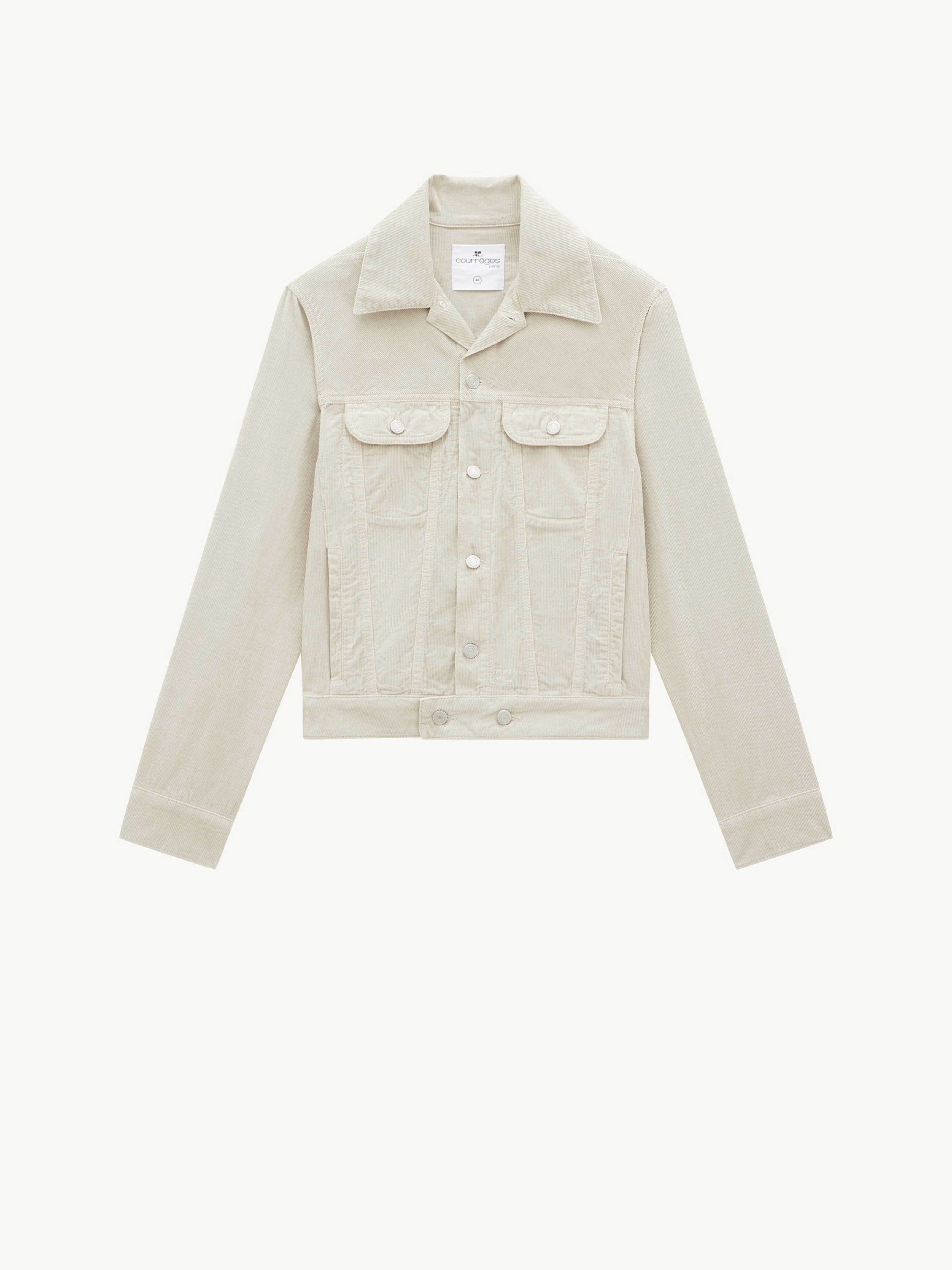 Corduroy trucker jacket with rounded pockets with flaps, metallic buttons and strap in the back. DETAILS Composition: 100% Cotton Color: Clay Country of manufacture: Morocco Item code: 123CBL084DE00181021