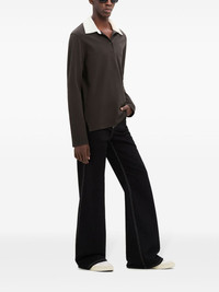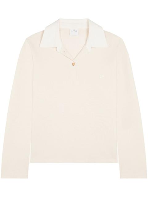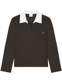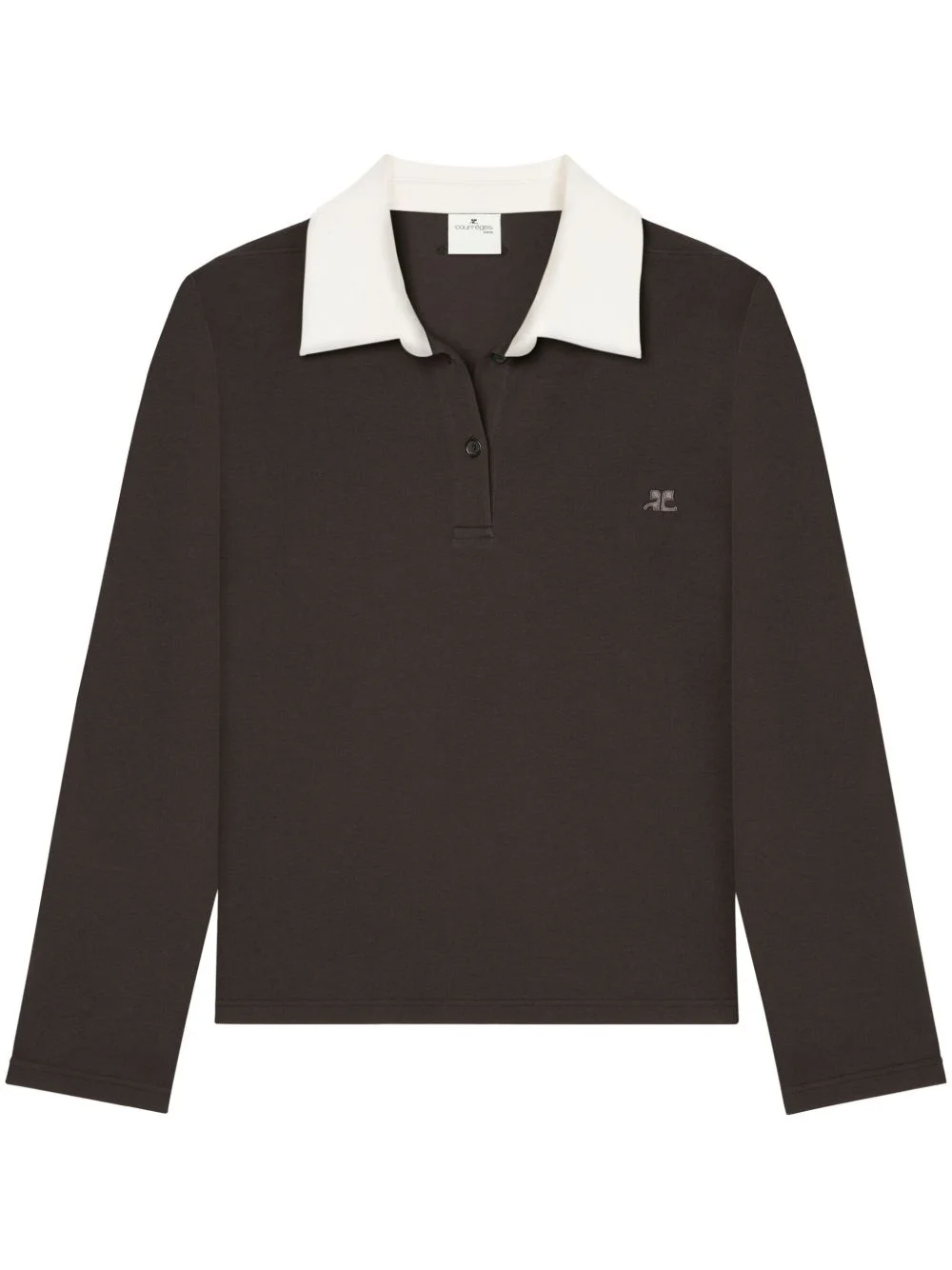 cotton blend polo shirt Highlights - Chocolate brown - Cotton blend - Front button placket - Long sleeves - Embroidered logo at chest and to the rear Imported Composition Cotton 96%, Polyamide 4%