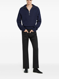 Trucker sweater Highlights - Navy blue - Half front zip fastening - Stand-up collar - Long sleeves - Ribbed cuffs and hem Imported Composition Cotton 67%, Polyamide 30%, Fabric 3%