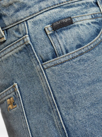 logo-plaque wide-leg jeans Highlights - Medium blue - Faded wash - High waist - Button fly - Logo plaque Made in Italy Composition Cotton 100%