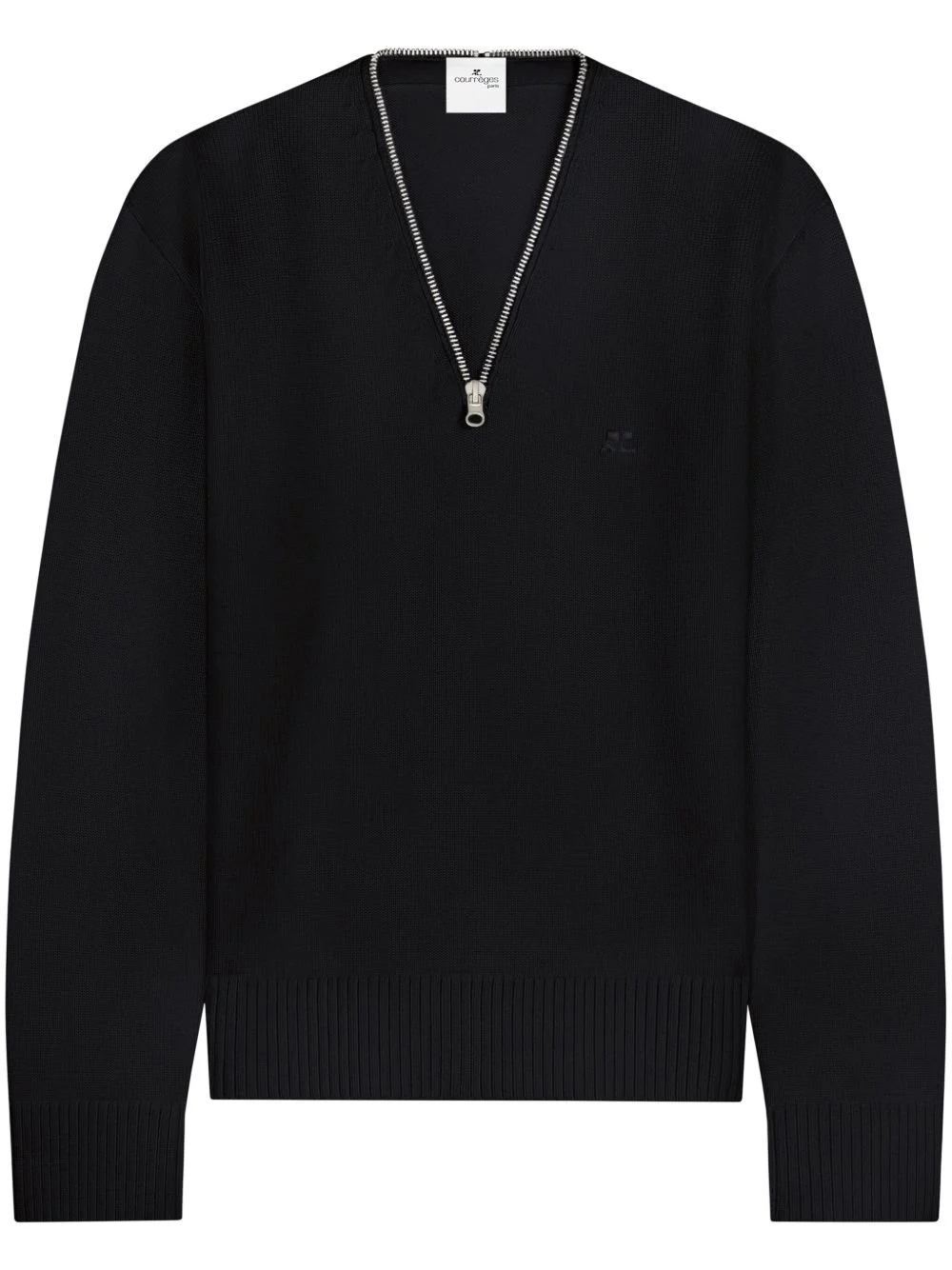 zip-detailing wool sweater Highlights - Black - Wool - Knitted construction - Embroidered logo at the chest - V-neck - Short front zip fastening - Long sleeves - Ribbed cuffs and hem - Straight hem - When buying this unisex item, keep in mind that it is graded in standard men's sizing. Imported Composition Wool 100%