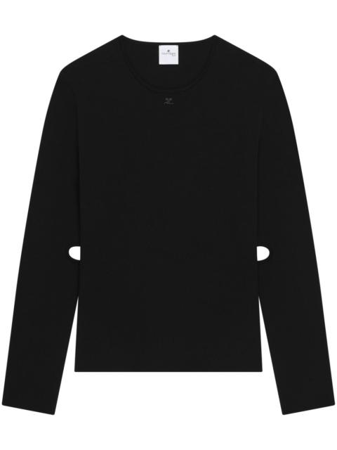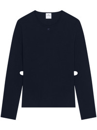 cut-out knit sweater Highlights - Navy blue - Cut-out detailing - Round neck - Applique logo - Long sleeves Imported Composition Viscose 70%, Polyester 30%