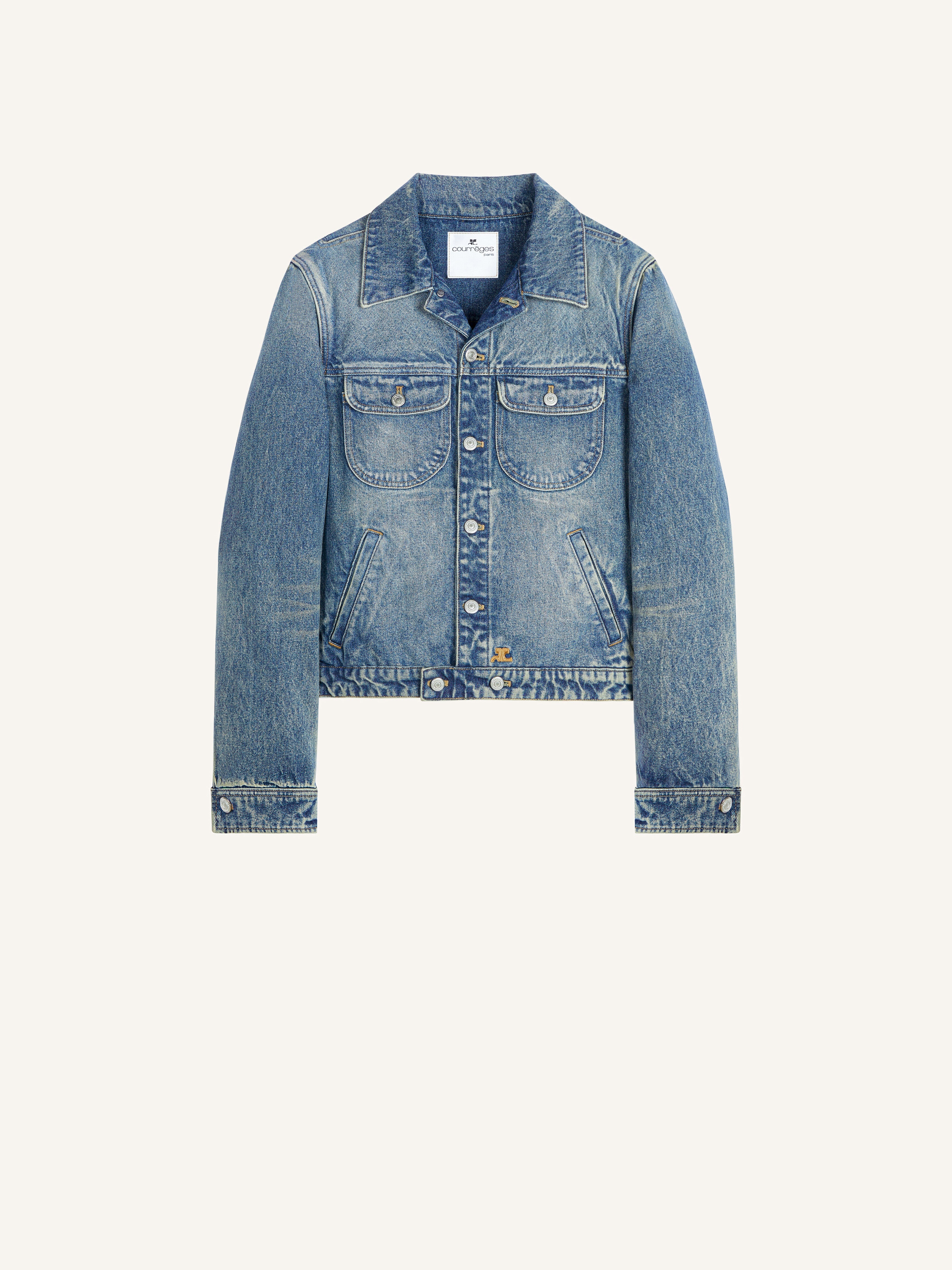Denim signature Trucker jacket with chest patch pockets and side welt pockets. Long sleeves. Front flex button closure with AC logo at the bottom jacket. The model is 1.85m tall and wears a size 48. DETAILS Composition: 100% cotton Country of Manufacture: IT SKU: 324DBL024DE00337052 Color: Vintage Medium Blue