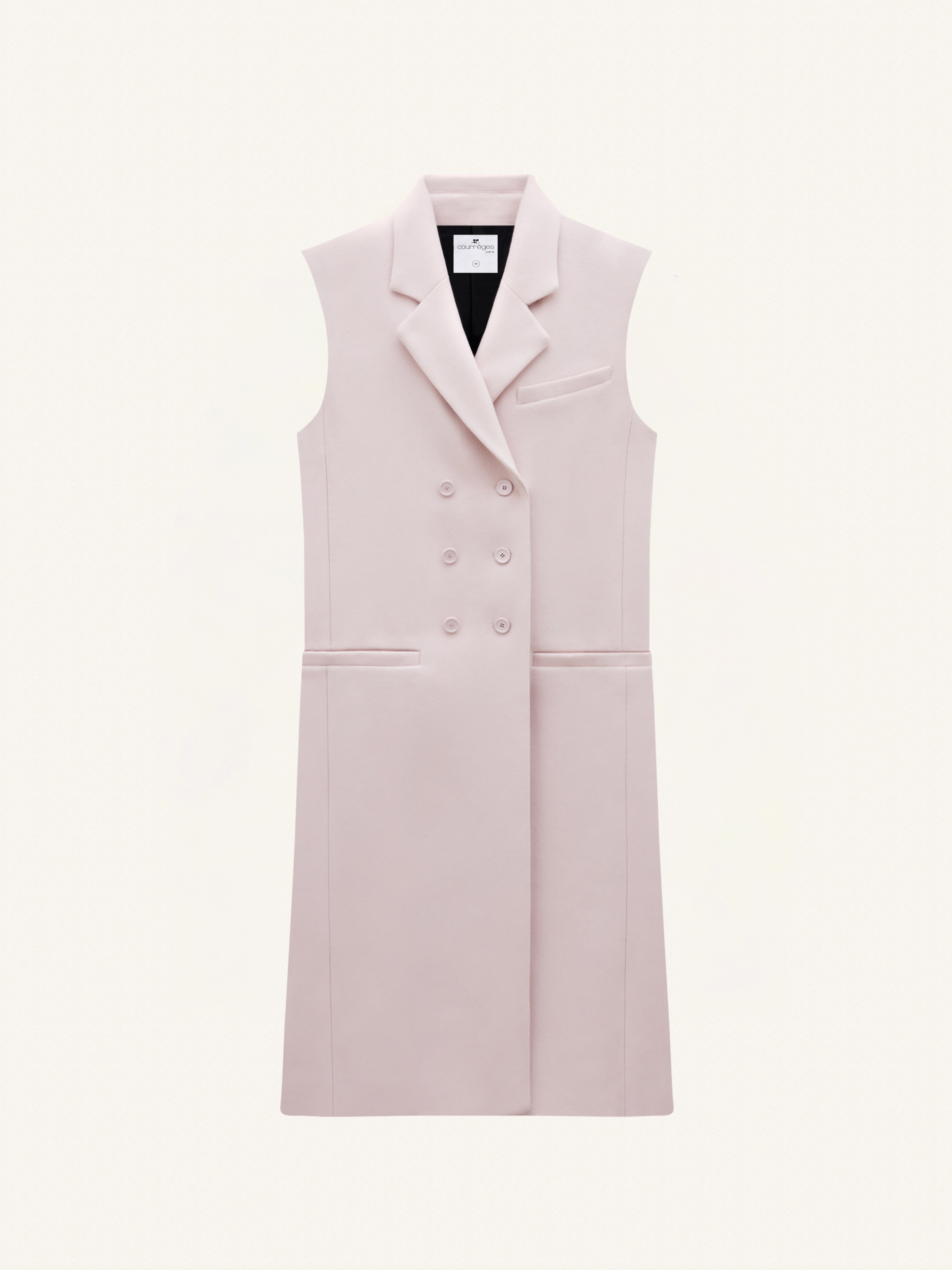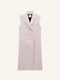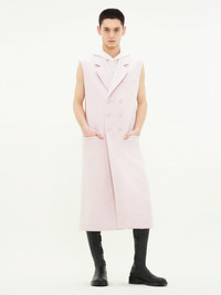 Wool sleeveless long coat with tailored collar and six buttons, two welt side pockets and one chest pocket. Embroidery in the back and AC logo on the back collar. DETAILS Composition: 50% Wool 19% Polyurethane 18% Polyester 13% Polyamide Country of manufacture: Slovakia Color: Powder Pink Item code: 323CMA092WO0034