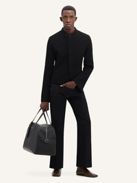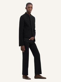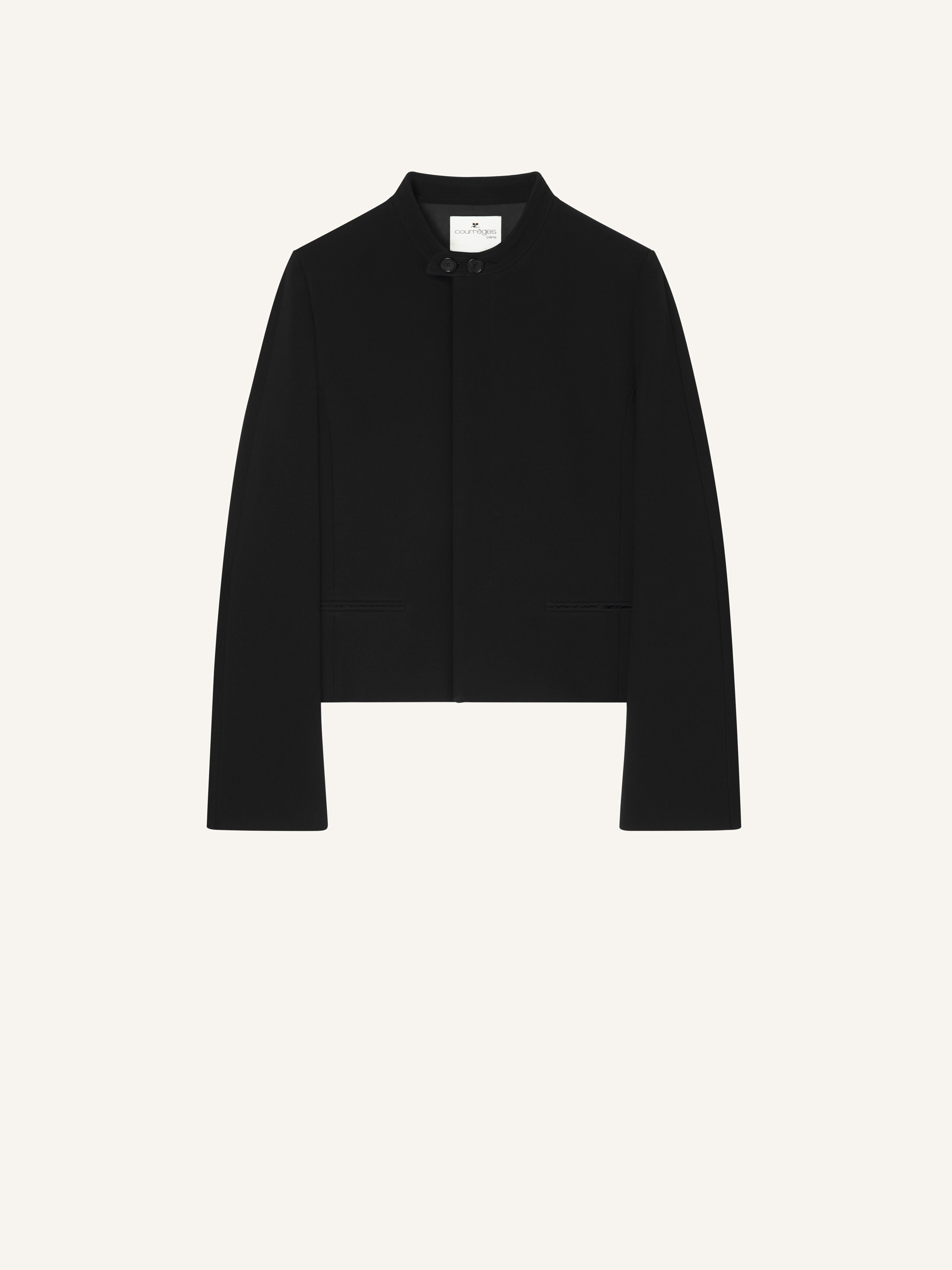 Heritage crepe tailored jacket with button-down stand-up collar and long flared sleeves. embroidered AC logo at the back of the collar. The model is 1.90m tall and wears a size 48. DETAILS Composition: 100% polyester Country of Manufacture: RS SKU: 324CVE092PL00529999 Color: Black