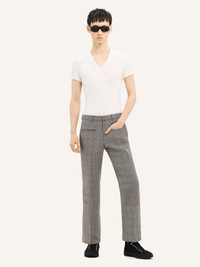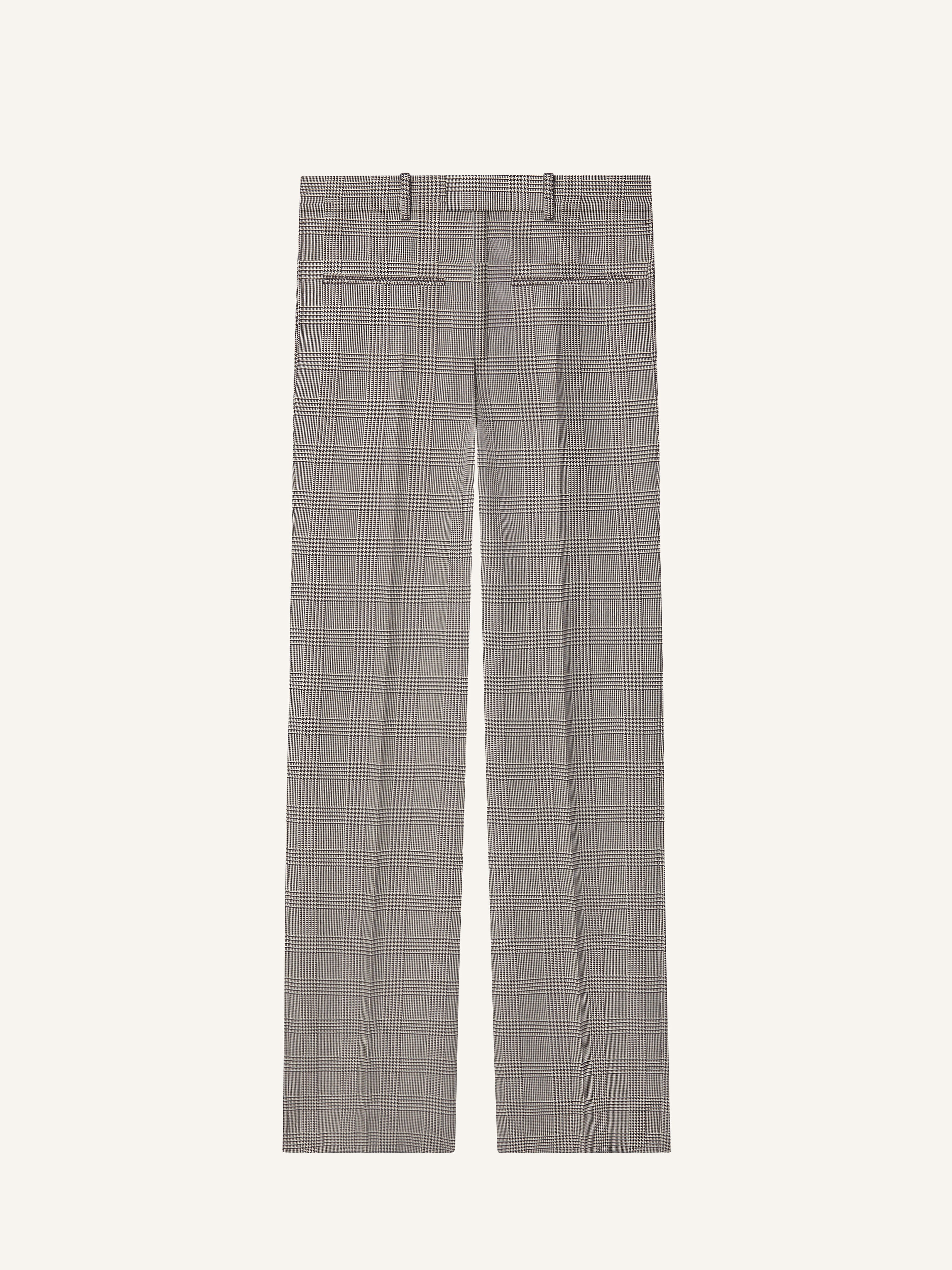 Straight Prince of Wales heritage pants with welt pockets and embroidered AC logo at the back. The model is 1.85m tall and wears a size 46. DETAILS Composition: 54% wool, 46% polyester Country of Manufacture: RO SKU: 324CPA249PL0166B107 Color: Sand / Mud Brown