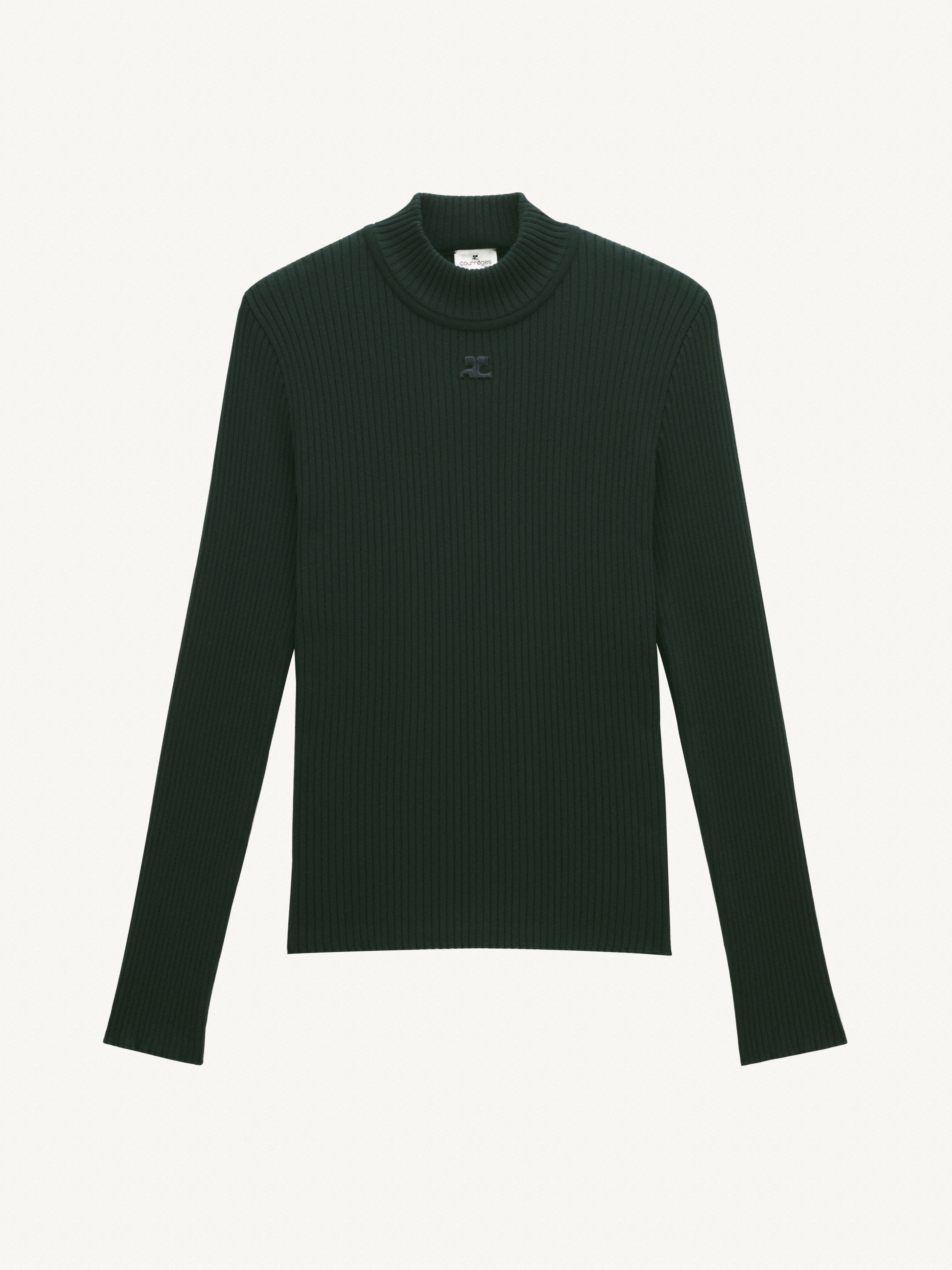 Long-sleeved ribbed knit jumper with high collar. AC logo on the front. DETAILS Main fabrics: 70% Viscose 30% Polyester Colour: Dark Green Item code: 322MPU008FI00018081