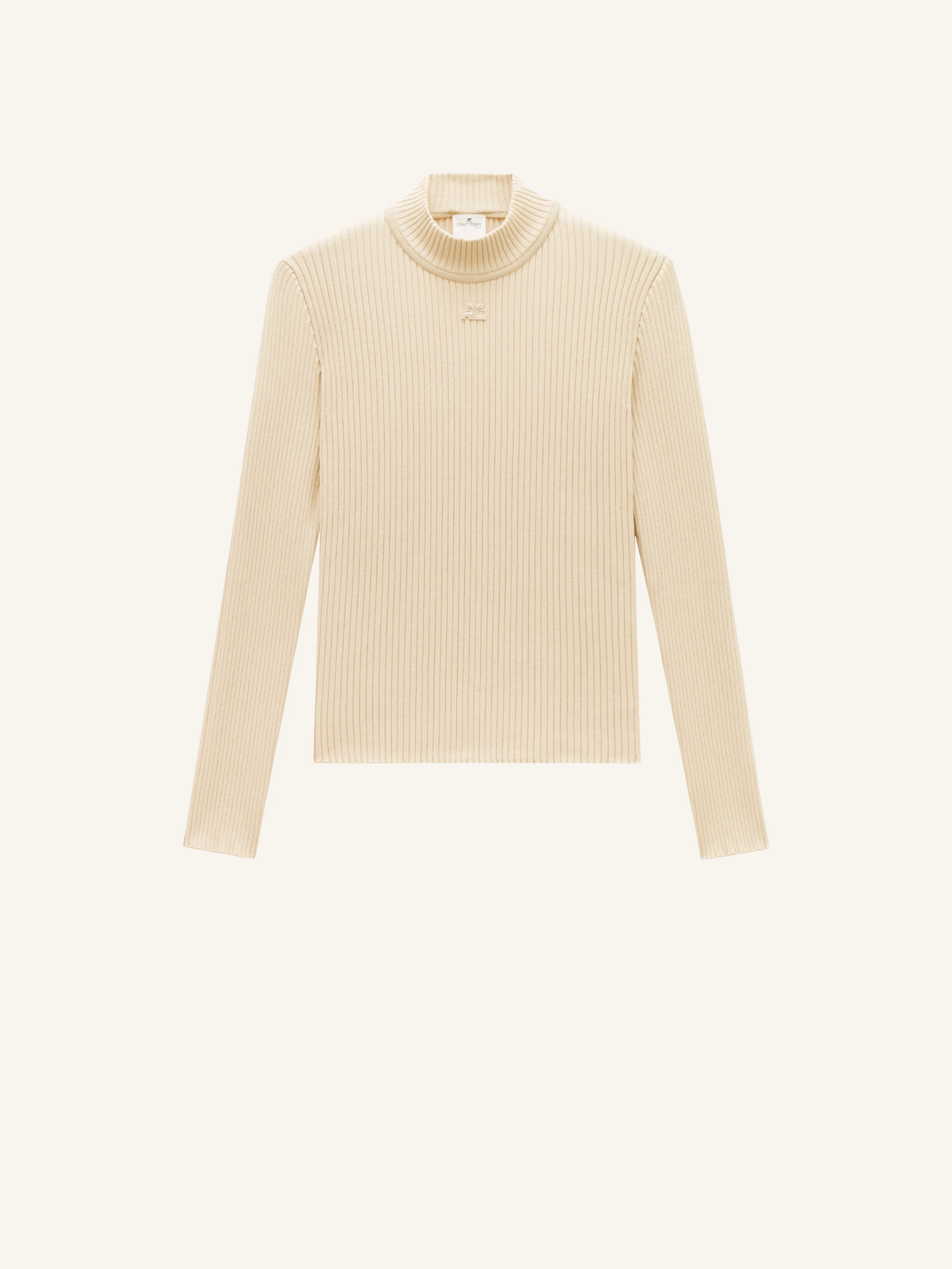 Long-sleeves ribbed knit jumper with high collar. AC logo on the front. DETAILS Composition: PERMPU008FI0001 Country of manufacture: Bulgarie Colour: Sand Item code: PERMPU008FI00011007