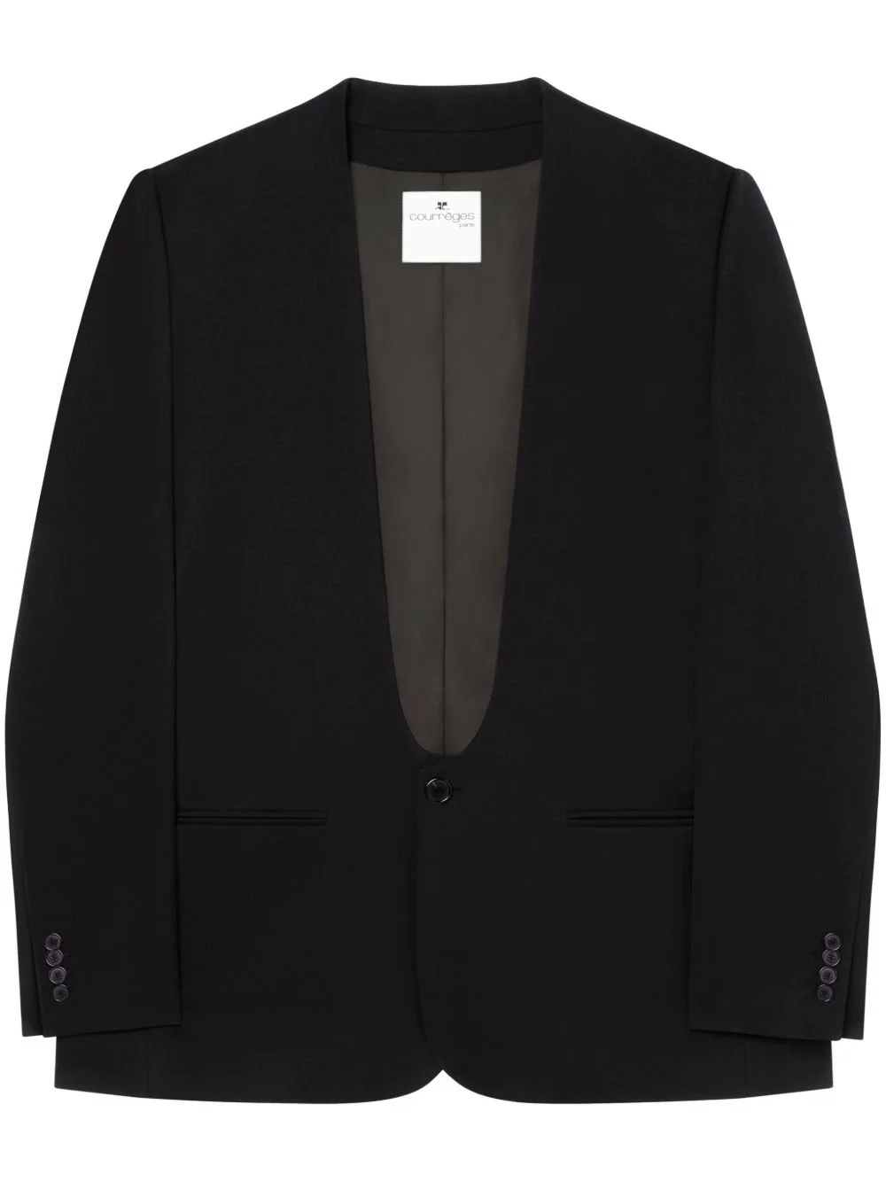 logo-patch wool blazer Highlights - Black - Wool - No lapels - Long sleeves - Zipped sleeves - Two side jetted pockets - Logo patch to the rear - Curved hem - Front button fastening Made in Italy Composition Wool 100% Washing instructions Read Manufacturer Guidelines