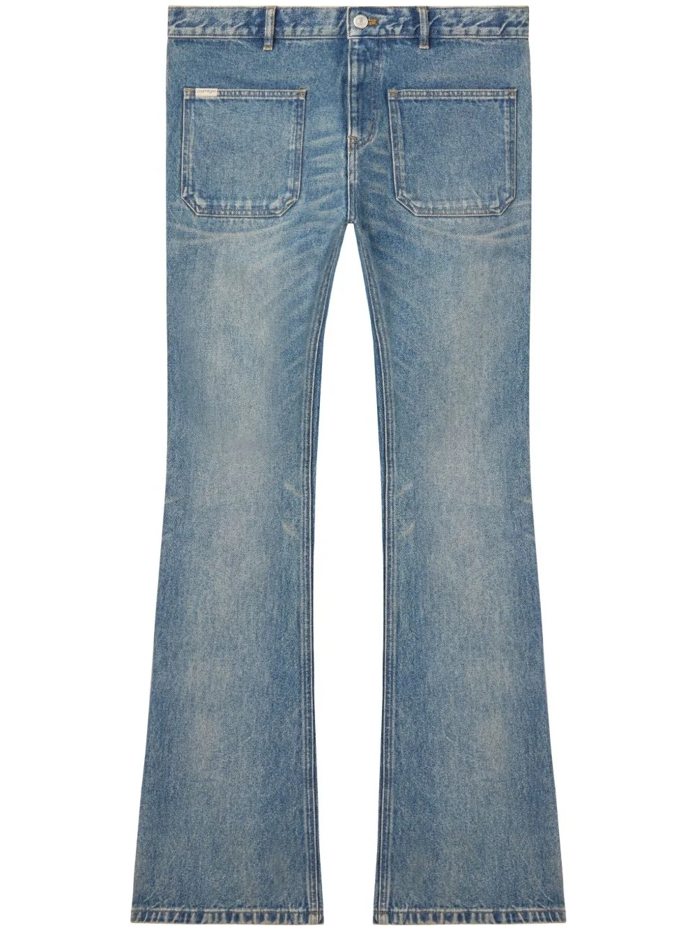 mid-rise bootcut jeans Highlights - Light blue - Cotton - Denim - Light wash - Whiskering effect at the thighs - Embroidered logo to the rear - Belt loops - Mid-rise - Bootcut - Front button and zip fastening - Two front patch pockets - Two rear patch pockets Made in Italy Composition Cotton 100% Washing instructions Read Manufacturer Guidelines