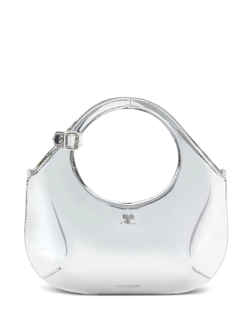 mini Holy metallic-effect tote bag Highlights - Silver-tone - Faux leather - Mirrored finish - Metallic effect - Silver-tone logo plaque - Decorative buckle detail - Circular top handles - Adjustable detachable shoulder strap - Concealed magnetic fastening - Main compartment Made in Italy Composition Outer: Polyurethane 80%, Polyester 20%