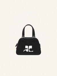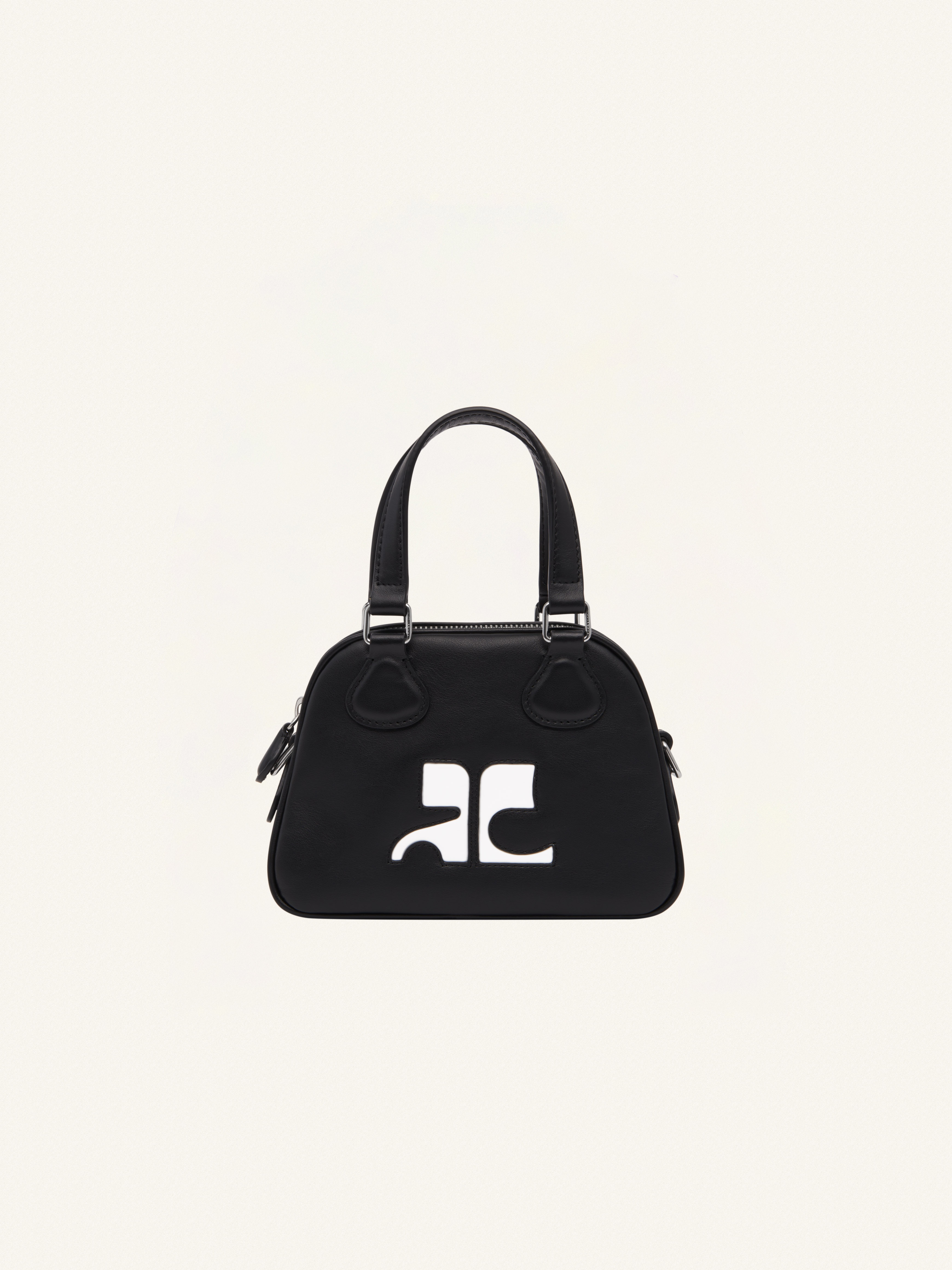 Mini Bowling Bag with incrusted logo on the front. Zipped metal closure with short handles. Adjustable and removable strap. Inside pocket. Length: 17 cm bottom and 14 cm on top Height: 9 cm Width: 6 cm DETAILS Composition : 100% Cuir Pays de fabrication : Italie Couleur : Noir Code Article : 124GSA083CR0027