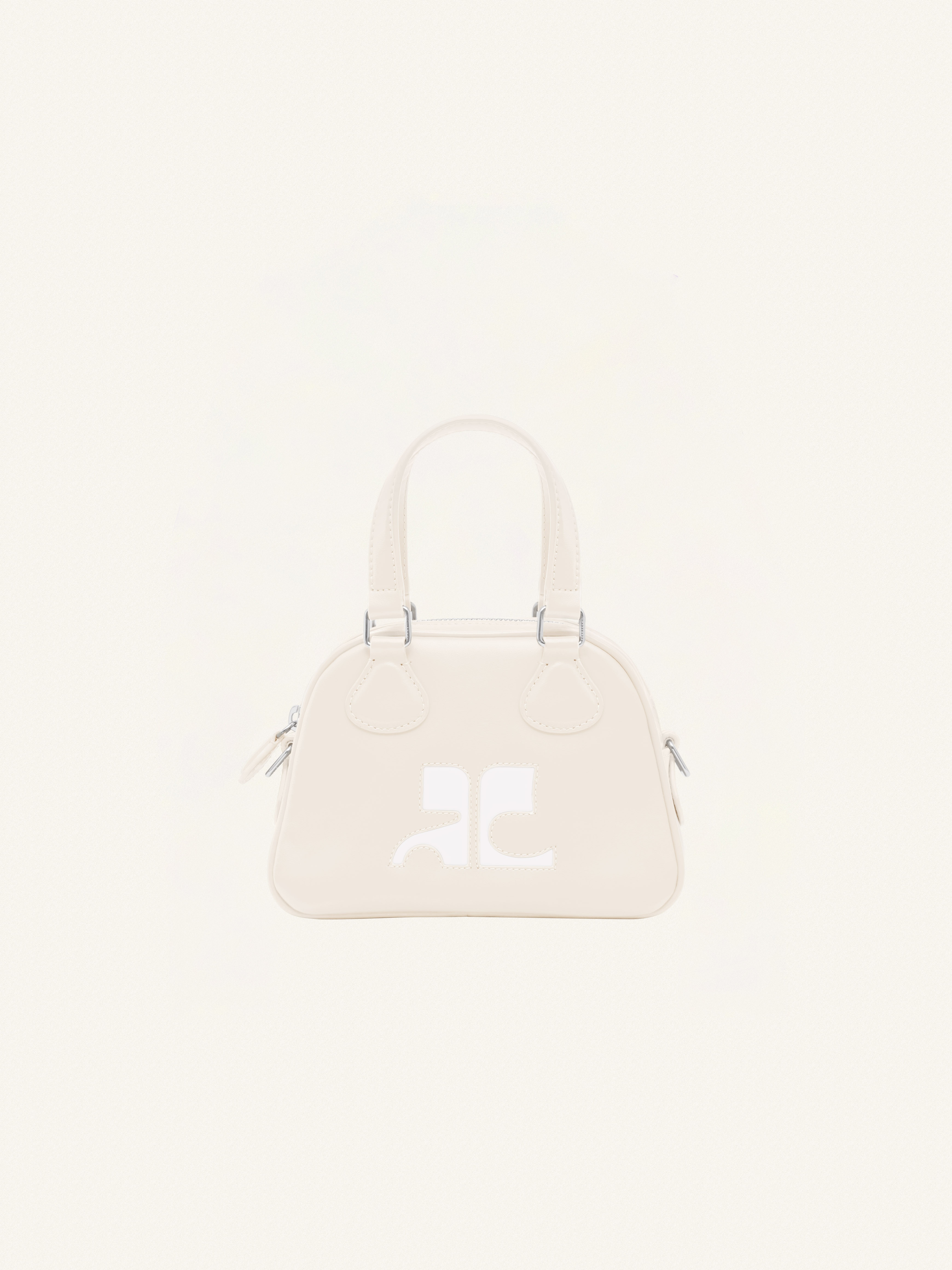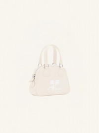 Mini Bowling Bag with incrusted logo on the front. Zipped metal closure with short handles. Adjustable and removable strap. Inside pocket. Length: 17 cm bottom and 14 cm on top Height: 9 cm Width: 6 cm DETAILS Composition : 100% Cuir Pays de fabrication : Italie Couleur : Gris Mastic Code Article : 124GSA083CR0027
