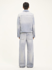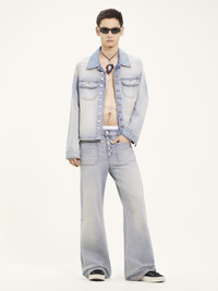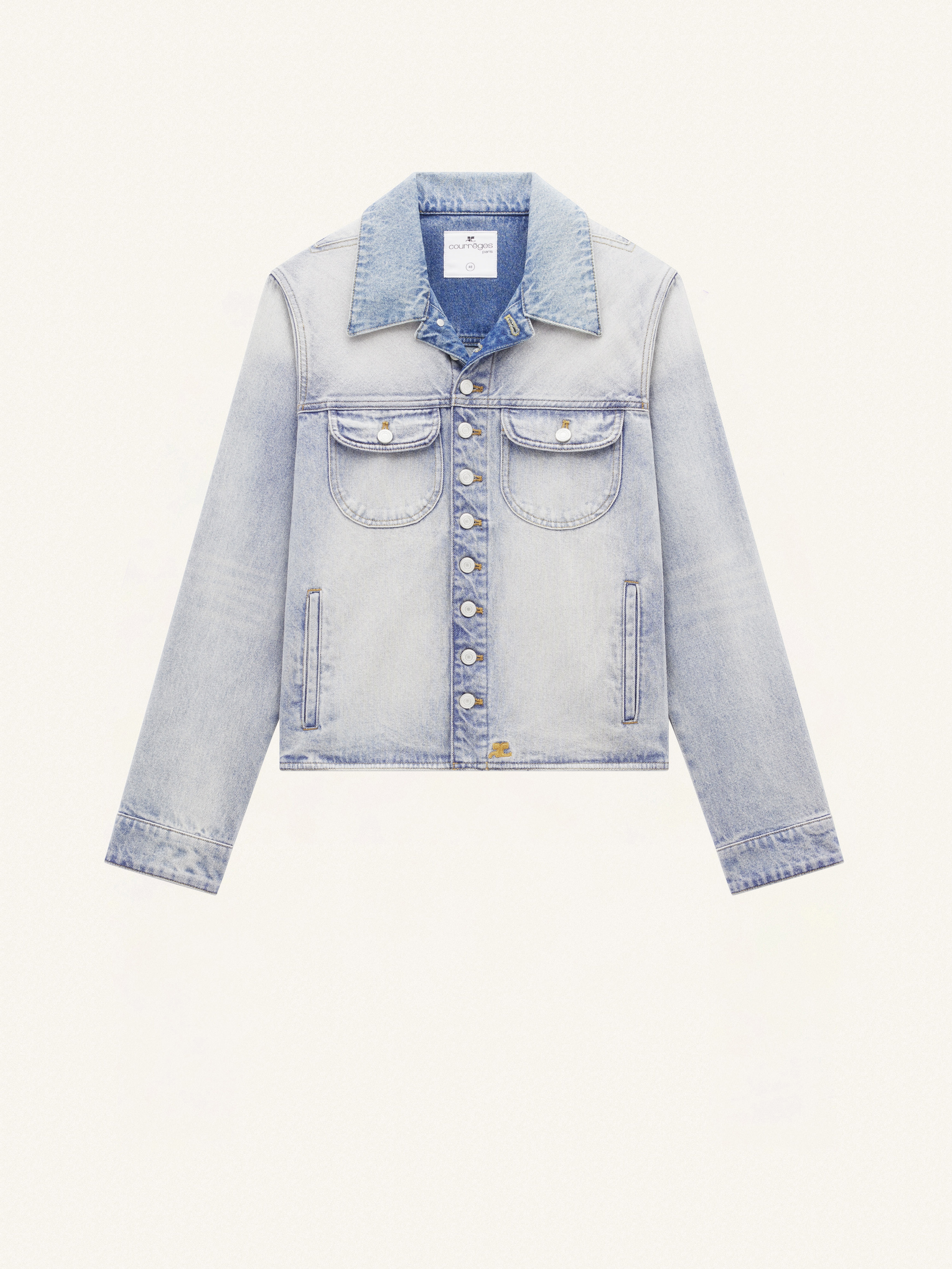 Denim trucker jacket with metallic multiflex, round pockets, AC logo and welt pockets. DETAILS Composition : 100% Coton Pays de fabrication : Tunisie Couleur : Bleu Clair Code Article : 124DBL152DE0016
