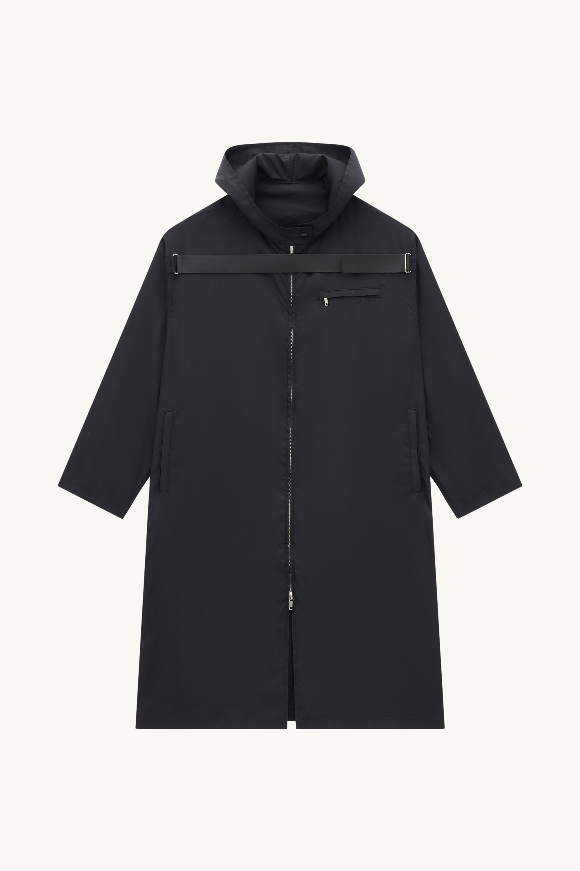 Hooded nylon parka jacket with back strap. DETAILS Composition: 100% Polyamide Lining: 100% Cupro Color: Black Country of manufacture: Hungary Item code: 123CMA069PA00329999