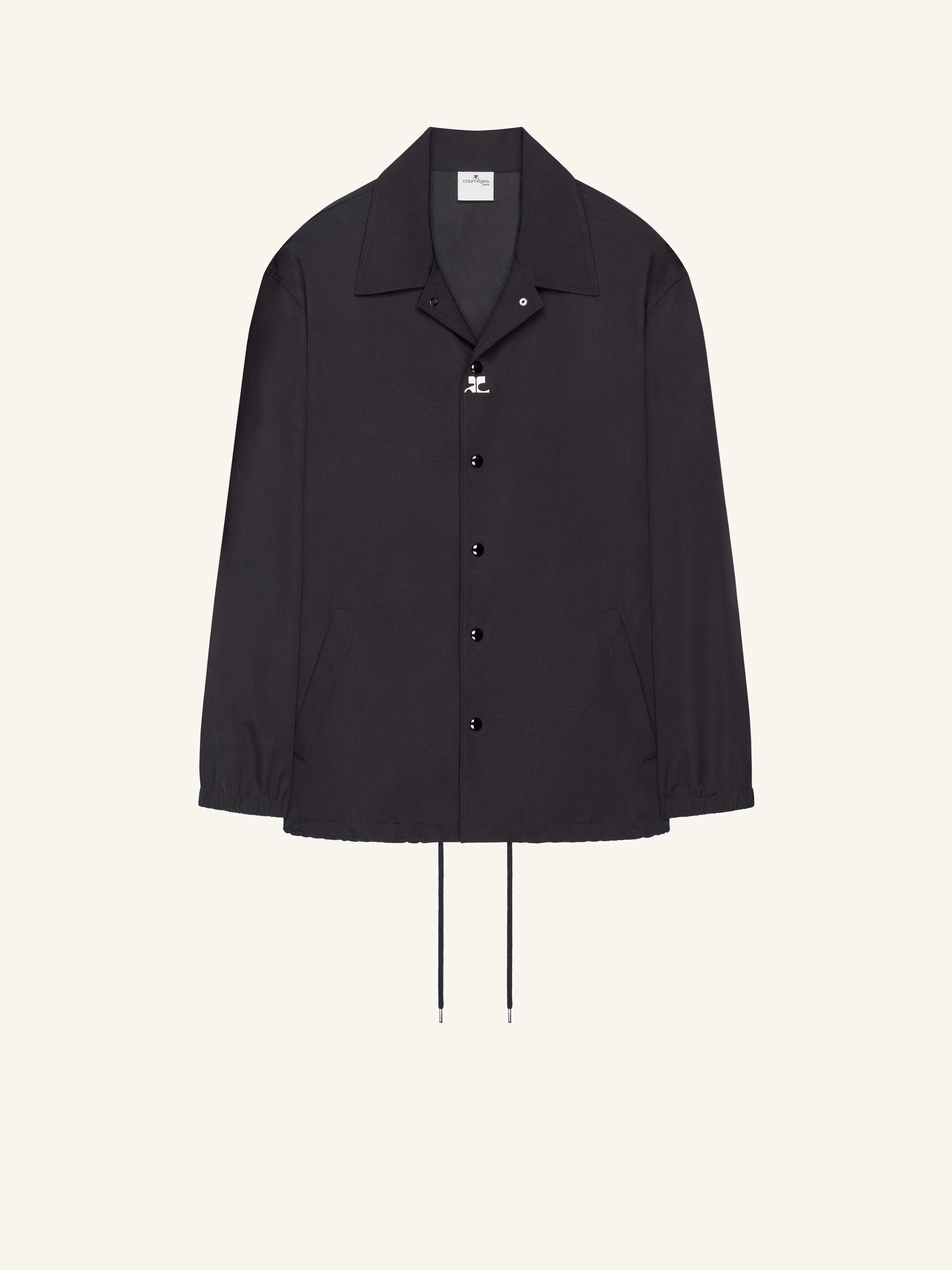 Coach style buttoned jacket with "Courreges" print on the back and two side pockets. Centered AC logo, adjustable waist and elasticated sleeves. The model is 1.84m and wears a size M. DETAILS Composition: 100% polyester Country of Manufacture: LT SKU: 126CMA271PL02589999 Color: Black