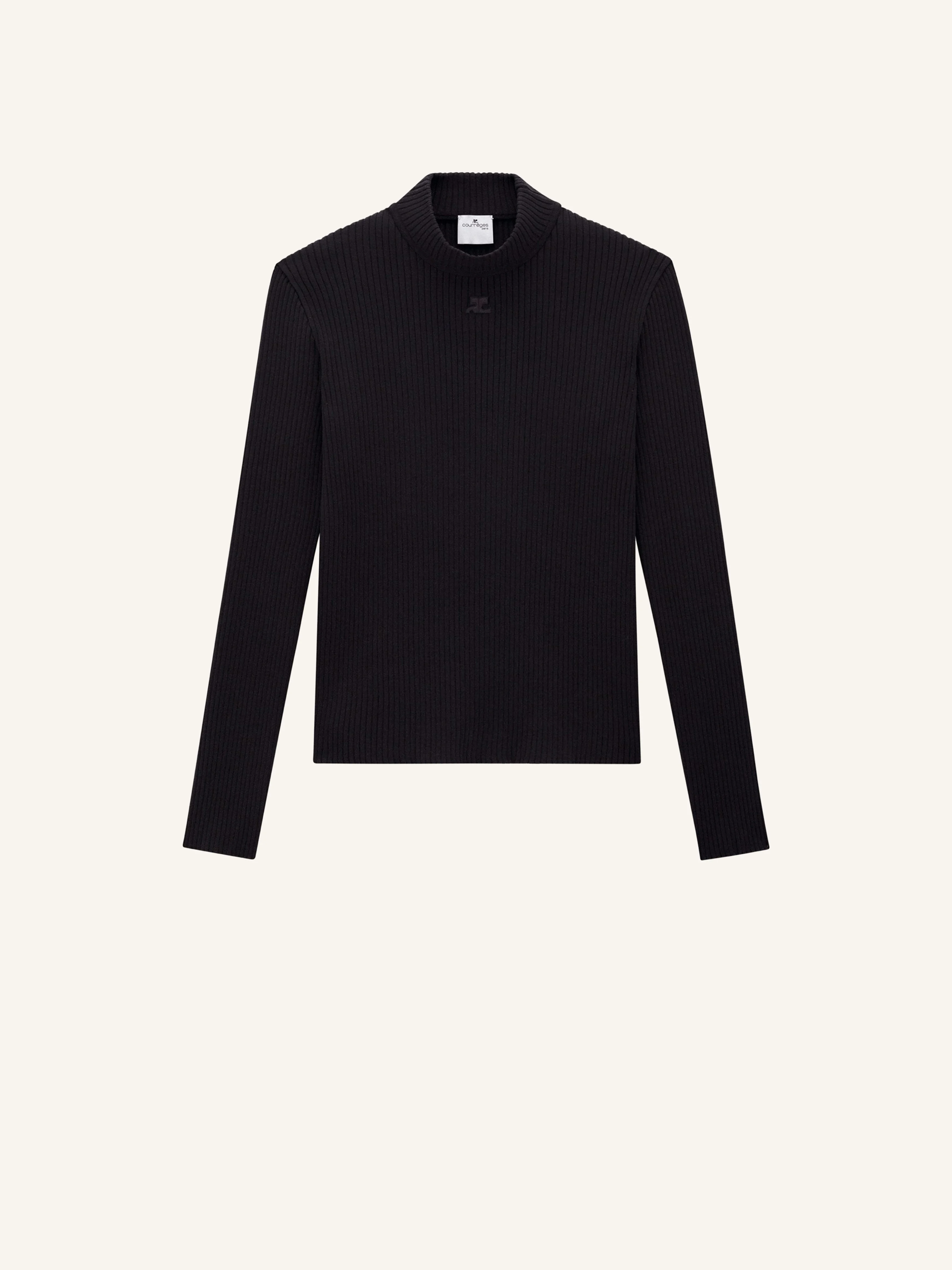 Long-sleeved ribbed knit jumper with high collar. AC logo on the front. DETAILS Composition: 70% Viscose 30% Polyester Country of manufacture: Bulgaria Color : Black Item Code :PERMPU008FI00019999