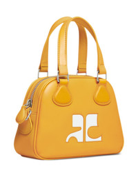 Reedition Bowling bag Highlights - Mustard yellow - Calf leather - Logo patch to the front - Top zip fastening - Two top handles - Adjustable detachable shoulder strap - Main compartment - Internal card slot - Full lining - Silver-tone hardware - This piece comes complete with a protective dust bag. Made in Italy Composition Outer: CALFSKIN 100% SIZE & FIT Measurement DEPTH 2.36 in(6 cm) HEIGHT 3.54 in(9 cm) WIDTH 6.69 in(17 cm)