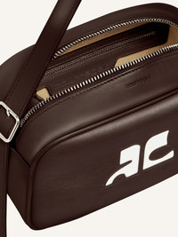 For its Reeditions collection, Courrèges presents a new version of its iconic Camera bag. Incrusted with our signature logo in the front, it also offers an adjustable strap and an inside pocket. DETAILS Composition : 100% VACHETTE 100% COTON 55% POLYAMIDE/NYLON 25% POLYURETHANE 20% ELASTHANE Color : Chocolate Item code : PERGSA061CR00451983