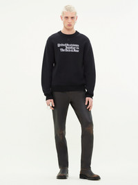 Straight relaxed fit jacquard wool crewneck sweater with longsleeves and Resistance print. DETAILS Composition: 100% Virgin wool Country of manufacture: Bulgaria Color: Black / Heritage White Item code: 323MPU102FI0036