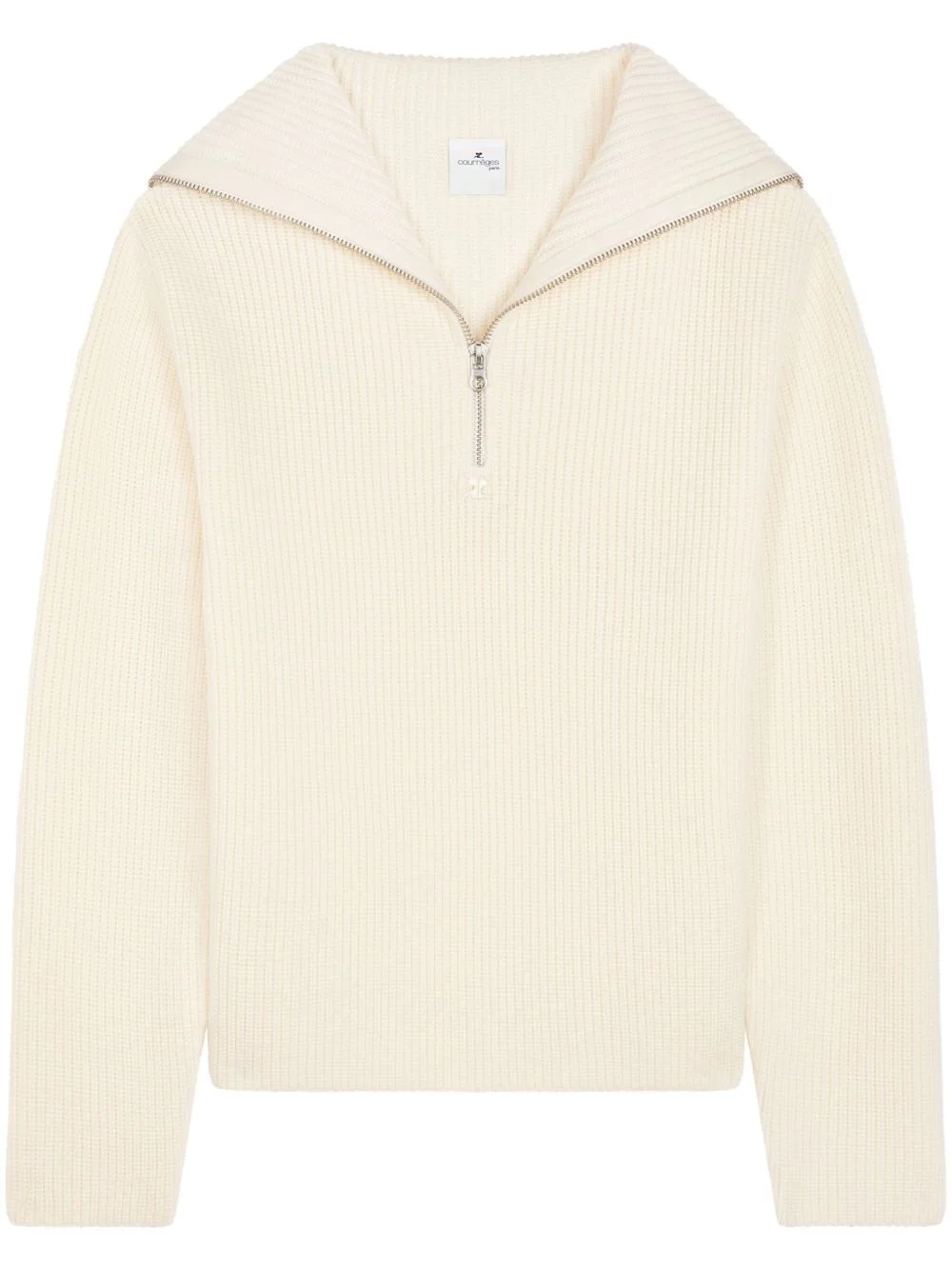 ribbed-knit hooded sweater Highlights - Light beige - Wool - Ribbed knit - Slouchy hood - V-neck - Short front zip fastening - Long sleeves - Straight hem - When buying this unisex item, keep in mind that it is graded in standard men's sizing. Made in Italy Composition Wool 100%