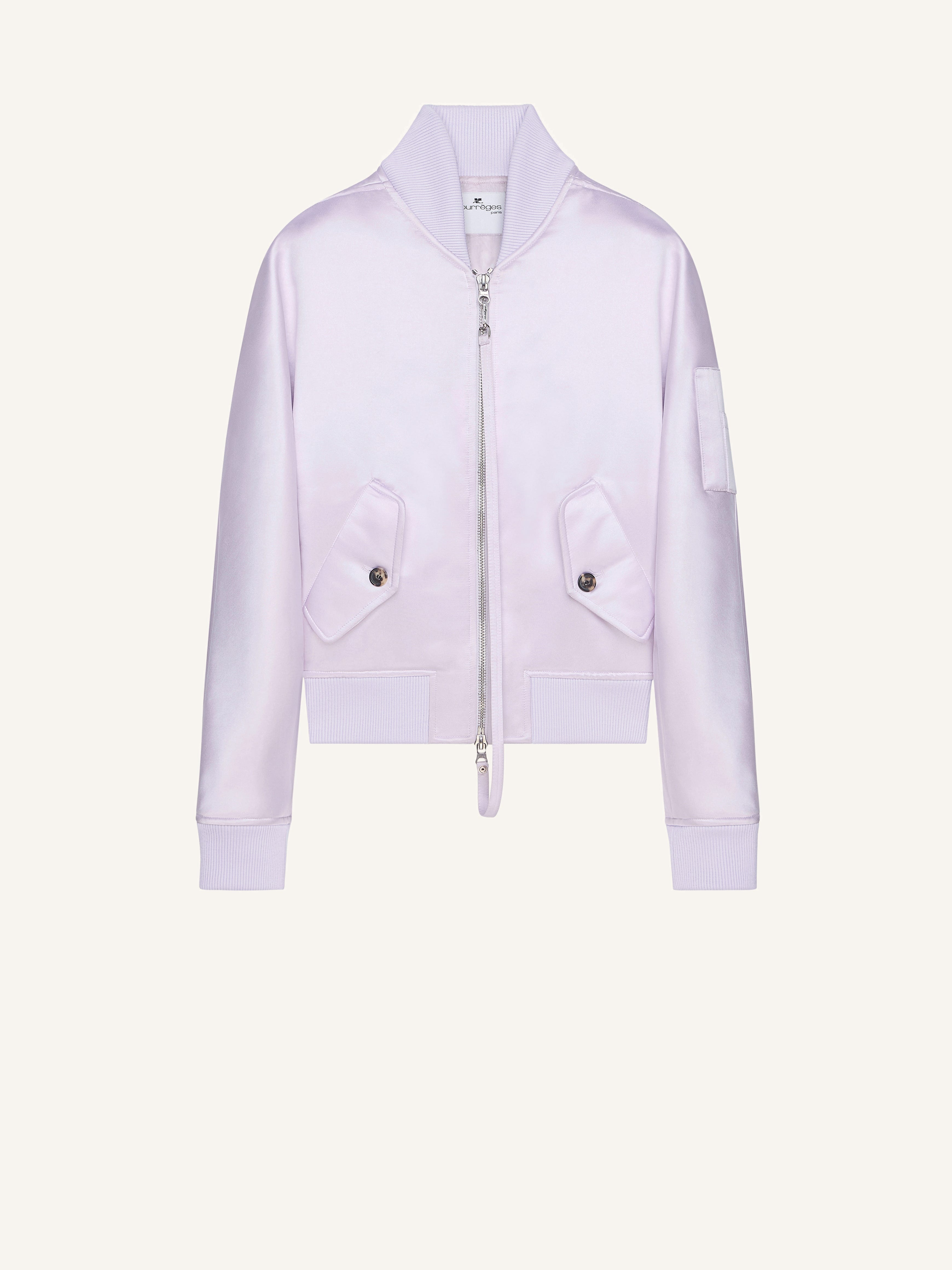 Satin zipped scuba bomber with side pockets and embroidered AC logo on the arm. "Courreges" logo on back tab. This item is unisex. The model is 1.85 m tall, both wearing size M. DETAILS Composition: 100% polyester Country of Manufacture: LT SKU: 125CBL261PL01556017 Color: Salt Pink