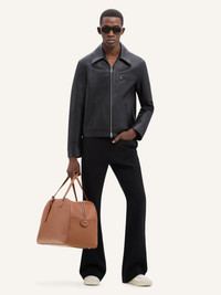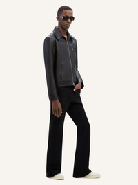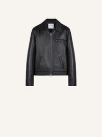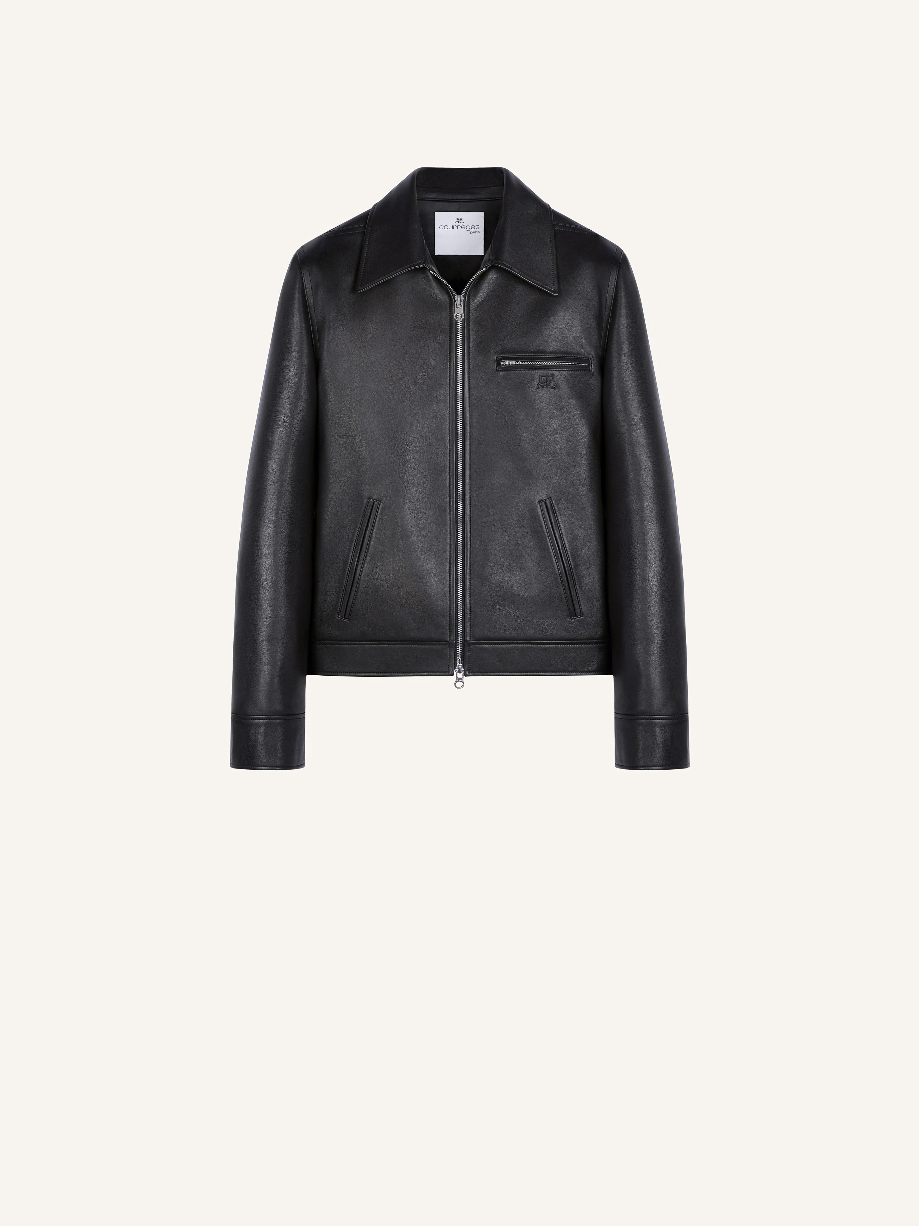 Leather signature jacket with shirt collar, long sleeves and welt pockets. AC logo on chest. The model is 1.90m tall and wears a size 48. DETAILS Composition: 100% calfskin Country of Manufacture: FR SKU: 324LBL204CV00349999 Color: Black