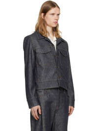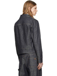 Stretch denim jacket. Fading throughout. · Open spread collar · Button closure · Flap and welt pockets · Embroidered logo patch at front hem · Hook-eye fastening at hem · Buttoned barrel cuffs · Logo-engraved antiqued gold-tone hardware · Contrast stitching in tan Supplier color: Dark heather grey 98% cotton, 2% elastane. Made in Italy 251783M177000