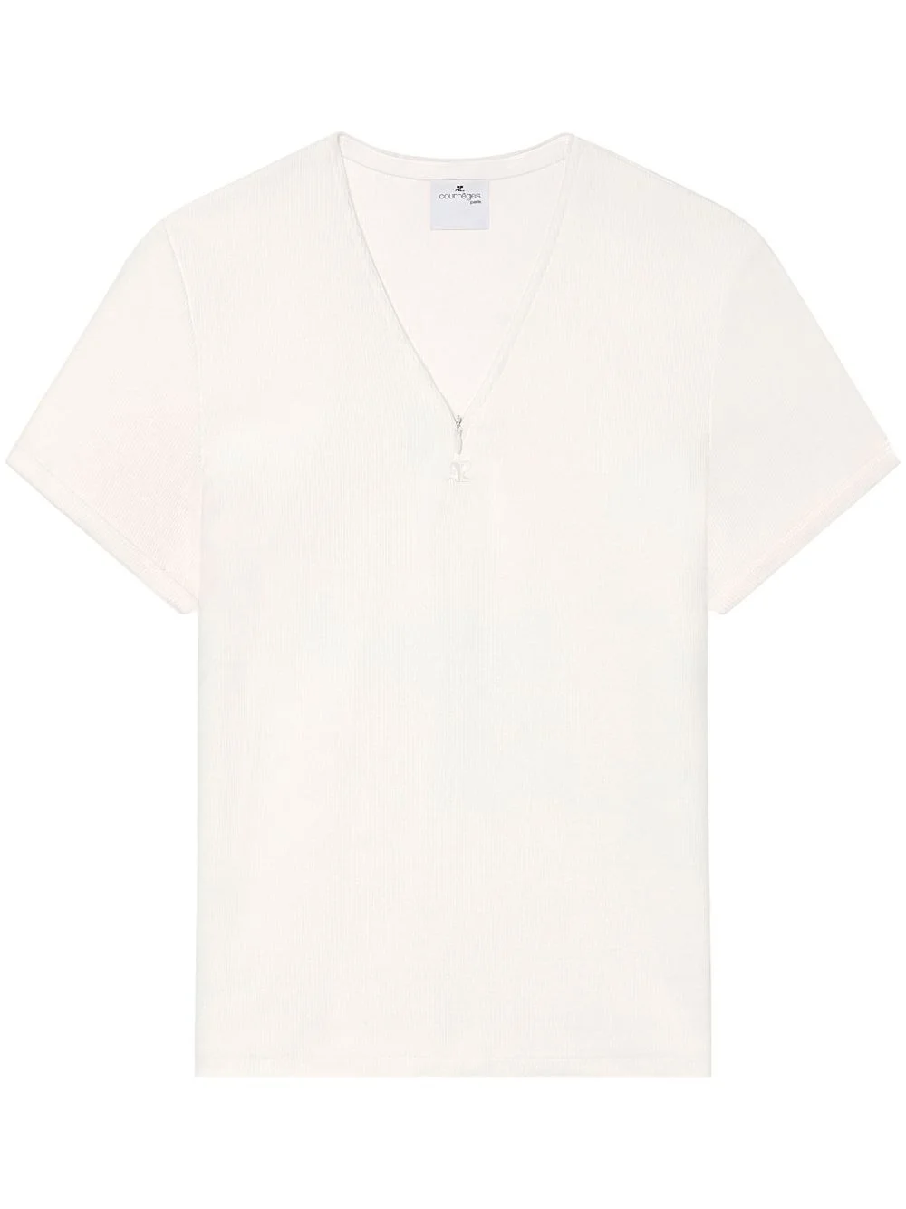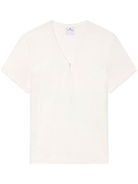 V-neck cotton-blend T-shirt Highlights - Off-white - Stretch-cotton - Embroidered logo to the front - Decorative zip detailing - V-neck - Short sleeves - Straight hem Imported Composition Cotton 97%, Elastane 3% Washing instructions Read Manufacturer Guidelines