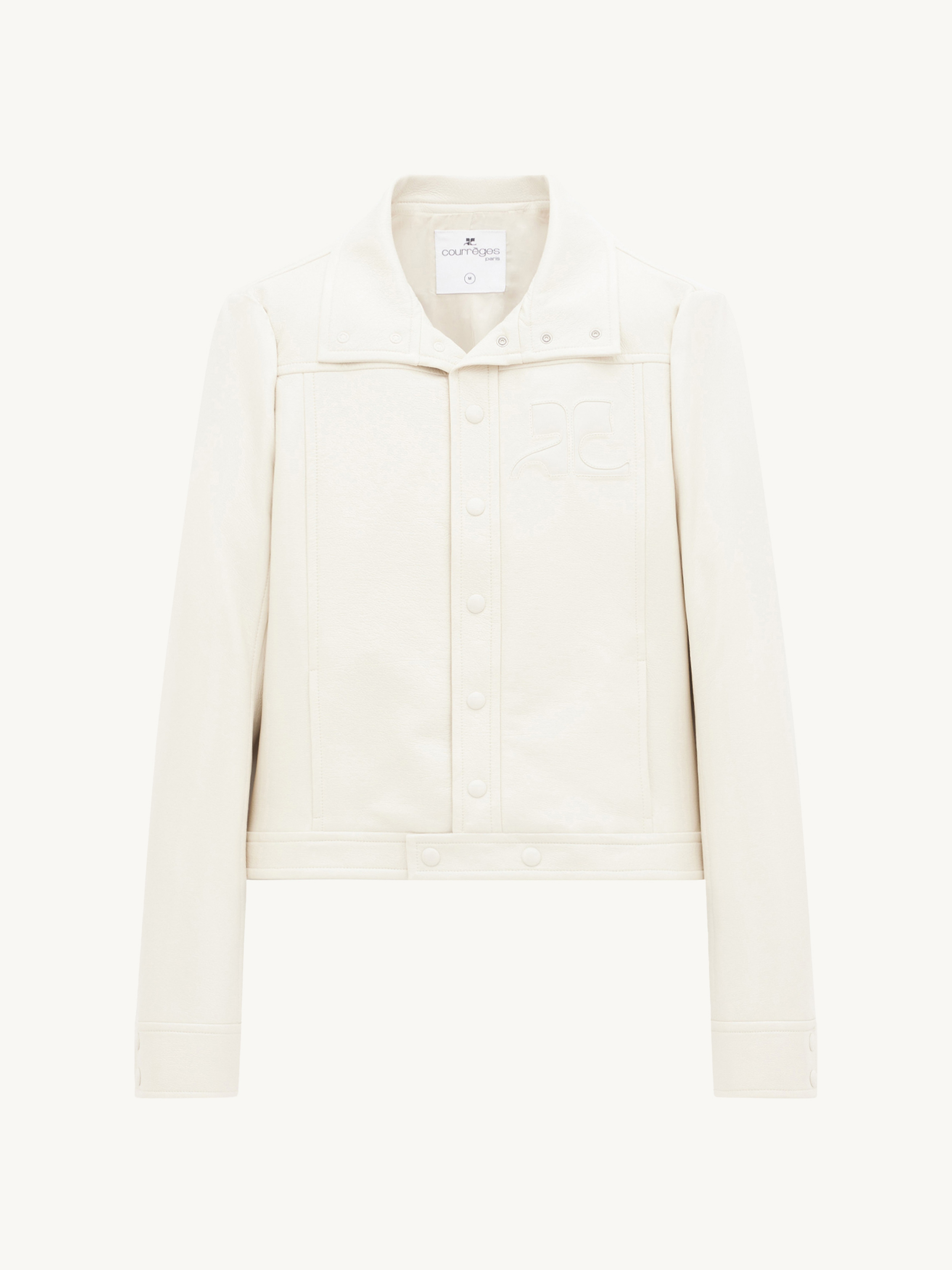 Iconic vinyl jacket with chest logo and snaps. DETAILS Composition: 88% Cotton 10% Polyurethane 2% Elastane Lining: 100% Cupro Color: Off-White Country of manufacture: Portugal Item code: 123CBL017VY00140011