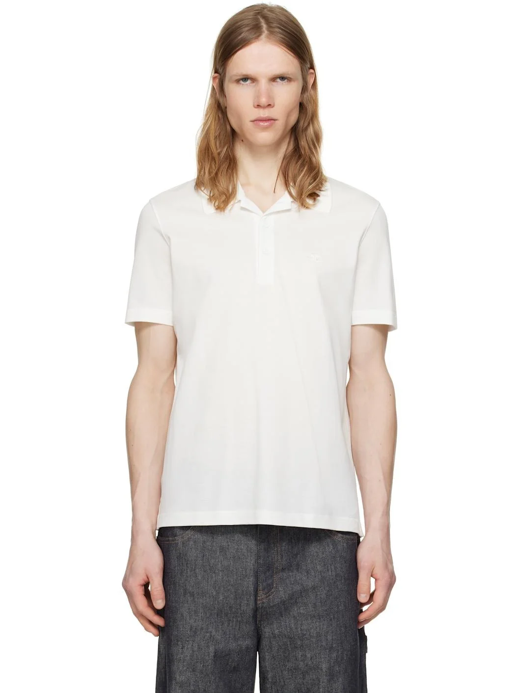 Cotton pique polo. · Rib-knit spread collar · Three-button placket · Embroidered logo patch at chest · Tennis-tail hem · Extended loop with embroidered logo at back collar Supplier color: White 100% cotton. Made in Italy 251783M212000
