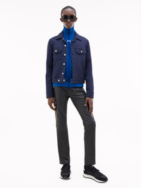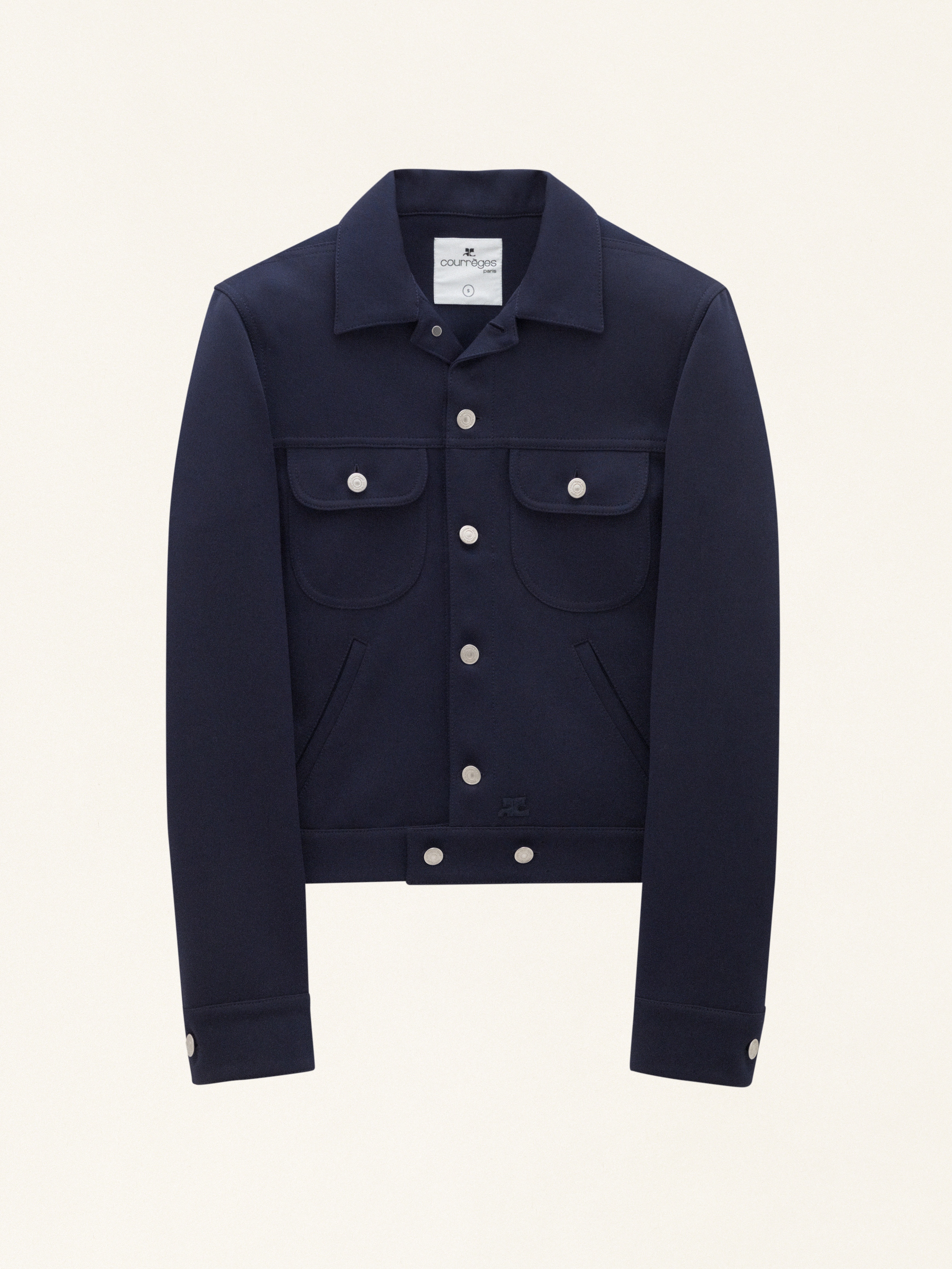 Men's workwear twill trucker jacket with flap chest pockets. Denim button closure. DETAILS Main fabrics : 83% Polyester 17% Acetate Made in Serbia Color : Navy Item code : 321CBL024PL00077075