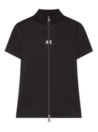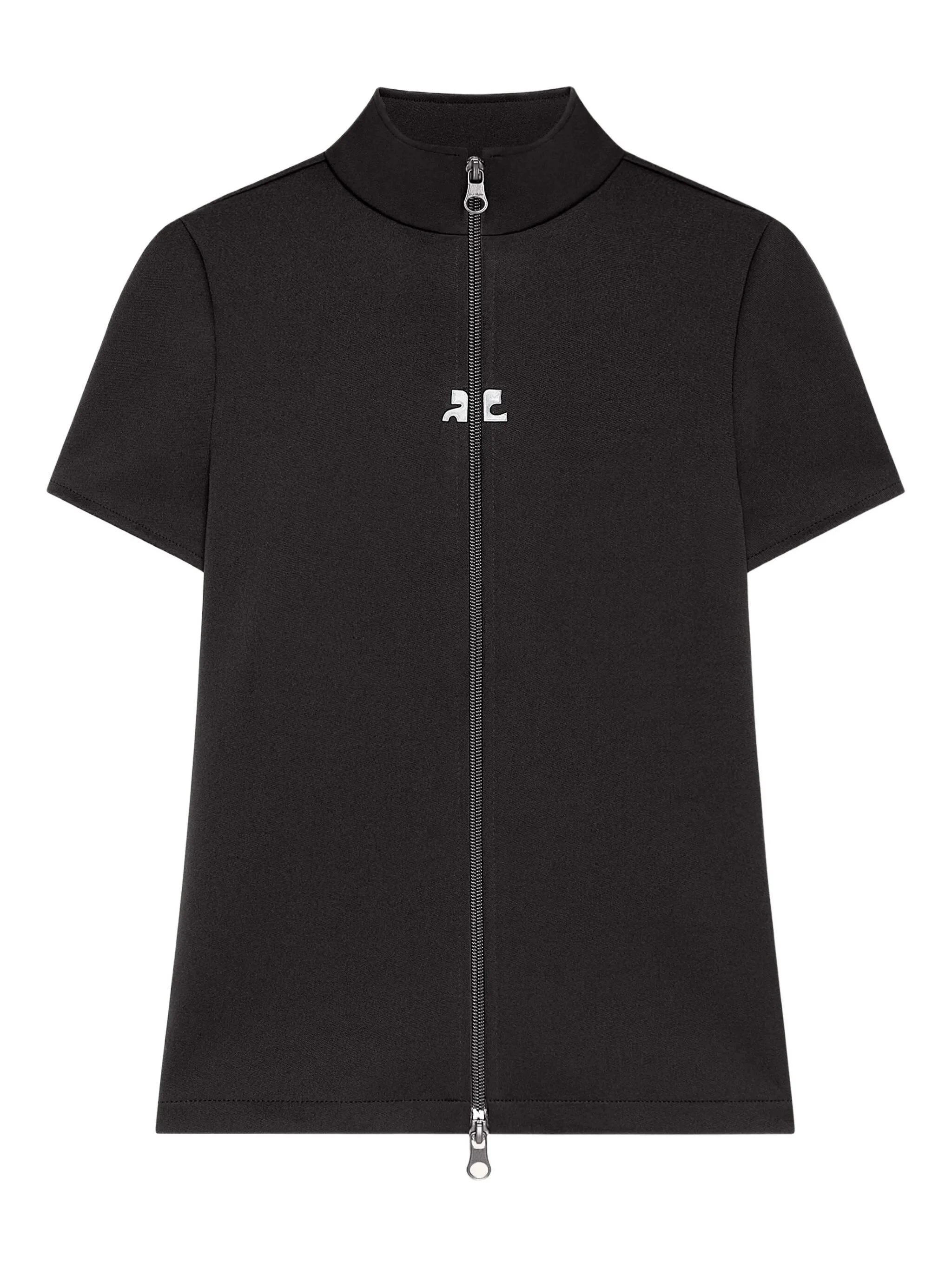 black high collar zip fastening logo detail short sleeves - Color: BLACK - Made in: Bangladesh - Designer Style ID: 325JTO446JS 0250 9999 Composition and care Polyester: 100.0%