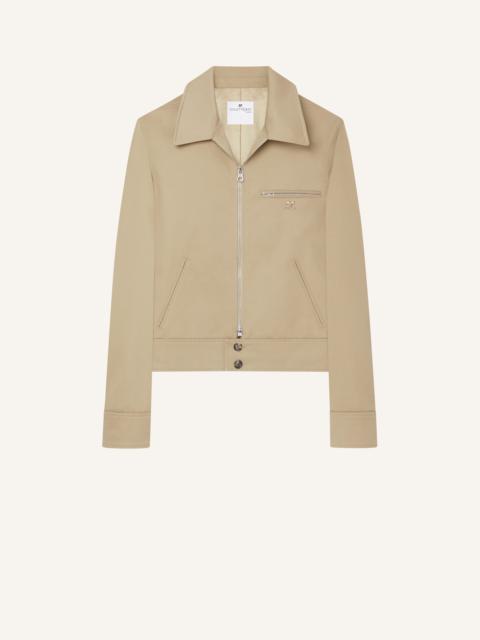 Straight zipped polycotton jacket with tonal embroidered AC logo on the front. Three welts pockets and buttons at the belt and cuffs. DETAILS Composition: 65% polyester, 35% cotton Country of Manufacture: RS SKU: 125CBL251PL01781005 Color: Beige