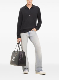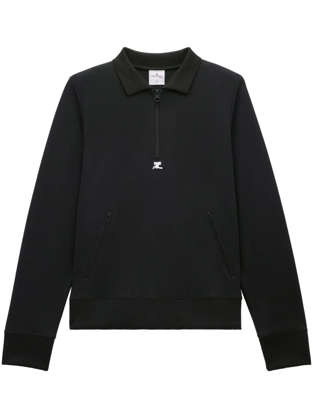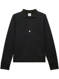 zipped polo shirt Highlights - Black - Jersey texture - Logo print to the front - Polo collar - Short front zip fastening - Long sleeves - Two side zip-fastening pockets - Straight hem - Ribbed trim Imported Composition Polyester 100%
