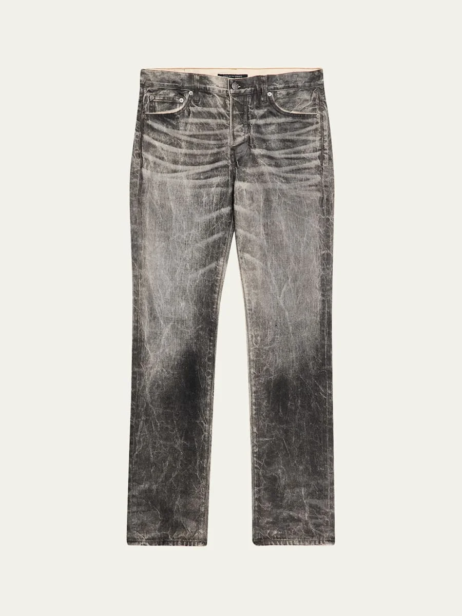 Cout De La Liberte "Jimmy" pants crafted from premium Italian twill for a refined and comfortable fit Approx. measurements: 9.8" rise; 34.5" inseam Exaggerated whiskering and fading Regular rise Five-pocket style Relaxed fit through slightly flared legs Button-zip front; belt loops Cotton Made in Italy Online Inquiries: BGS21_NDPP3| Store Inquiries: #5061819