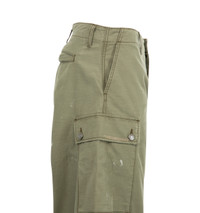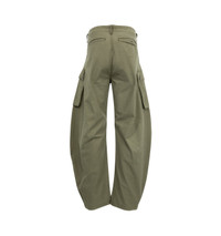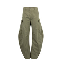 COUT DE LA LIBERTE Monty Twill Slub Barrel Cargo Pant featuring barrel legs, button zip front closure, 2 side pockets, 2 back welt pockets, 2 cargo pockets and belt loops. 100% cotton. Made In USA. DESIGNER STYLE ID: M9513044 COLOR: BACK ALLY OLIVE