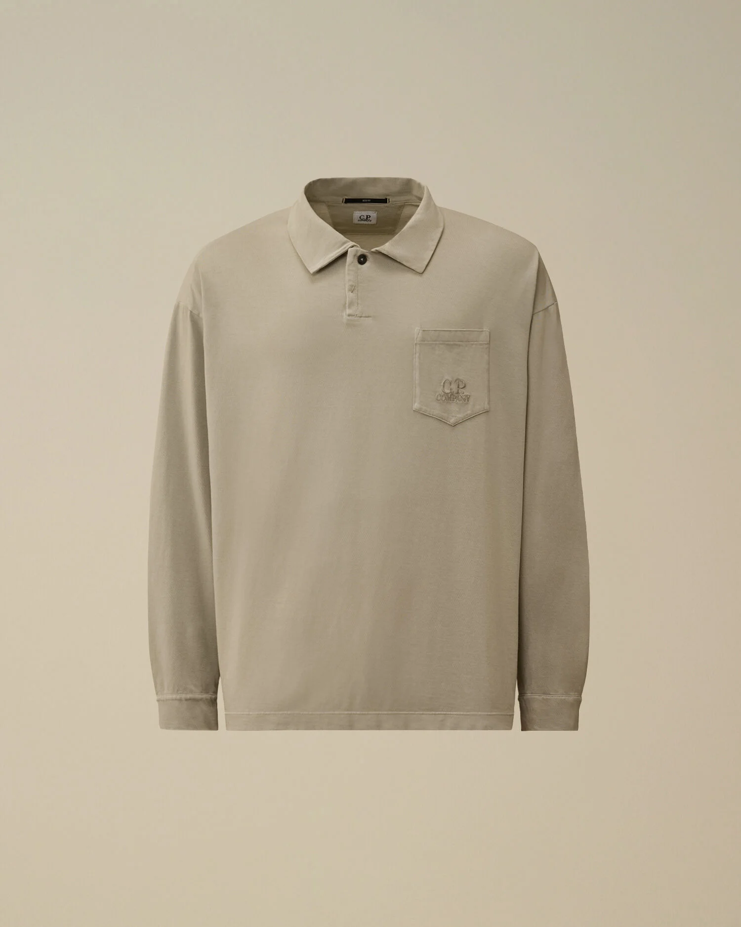 Long sleeve polo crafted in 20/1 jersey, a mid-weight cotton fabric. The polo features a collar with a one-button placket, a chest open pocket with an embroidered logo detail, and side vents. Garment dyed. Boxy fit. - Collar with one-button placket - Chest open pocket with embroidered logo detail - Side vents - Garment dyed - Boxy fit CARE & COMPOSITION Care - Wash max 30°C - Mild process - Do not bleach - Do not tumble dry - Ironing maximum temperature 110°C - without steam - Do not dry clean - Flat dry in the shade - Wash separately - Wash inside out - Iron inside out - Do not iron decorations - Dry inside out - Do not expose the garment to direct sunlight or artificial light Composition - External fabric: 100% Cotton SIZE & FITTING - Fits true to size, take your normal size - Model is 186 cm-6' 1" / 98-100 cm chest and is wearing a size L PRODUCT PASSPORT PRODUCT - Weaving: Italy - Dyeing: Italy - Confection: Italy PACKAGING - Minimum percentage of recycled materials 70%