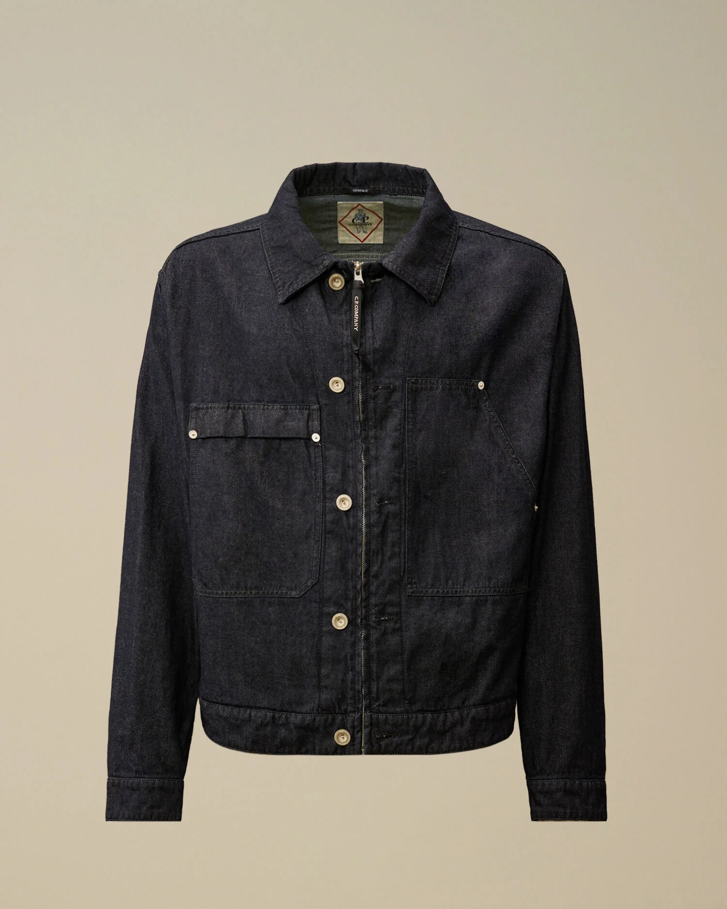 Jacket crafted from 3/1 dark indigo blue denim, an 8.75 oz right-hand twill cotton fabric. The finished garments are washed and treated with a resin coating. The model features a classic collar, zip and button fastening, and chest pockets with metal rivets. Completed with adjustable button cuffs, back button adjusters, and logo patches applied to the back and inner side. Regular fit. - Classic collar - Zip and button fastening - Chest pockets with metal rivets - Adjustable button cuffs - Back button adjusters - Back and inner applied logo patch - Regular fit CARE & COMPOSITION Care - Wash max 30°C - Mild process - Do not bleach - Do not tumble dry - Ironing maximum temperature 110°C - without steam - Do not dry clean - Line dry in the shade - Do not iron decorations - Fabric may release color - wash separately and inside out - Do not expose the garment to direct sunlight or artificial light Composition - External fabric: 100% Cotton - Lining: 65% Polyester, 35% Cotton SIZE & FITTING - Model is 186 cm-6' 1" and is wearing a size L - Fit: Regular PRODUCT PASSPORT PRODUCT - Weaving: Pakistan - Dyeing: Pakistan - Confection: Romania PACKAGING - Minimum percentage of recycled materials 70%