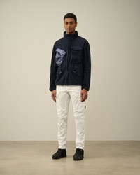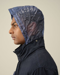 Jacket constructed with a stand-up collar, concealable hood and a full hidden zip fastening. The garment also features a Lens detail on the left sleeve pocket, two secure chest comparments, two slanted hand pockets and adjustable cuffs and hem. Crafted from 50 Fili, a nylon/cotton mix derived from American field parkas, mixed with PiUM.The polyurethane coating improves its water resistance and confers a deep, varied tonal finish to the piece after the double garment dyeing process. Regular fit. - Stand-up collar - Concealable hood - Full hidden zip fastening - Lens detail - Secure chest compartments - Slanted hand pockets - Adjustable cuffs and hem - Garment dyed - Regular fit CARE & COMPOSITION CARE - Wash max 30°C - Mild process - Do not bleach - Do not tumble dry - Ironing maximum temperature 110°C - without steam - Do not dry clean - Line dry - Wash separately - Wash inside out - Remove detachable accessories before washing - Do not expose the garment to direct sunlight or artificial light COMPOSITION - External fabric: 71% Cotton, 29% Polyamide / Nylon - Lining: 100% Polyamide / Nylon - Coating: 100% Polyurethanic resin - Secondary fabric: 100% Polyurethane - Secondary lining: 100% Polyamide / Nylon SIZE & FITTING - Fits true to size, take your normal size - Model is 188 cm-6' 2" / 98-102 cm chest and is wearing a size 50
