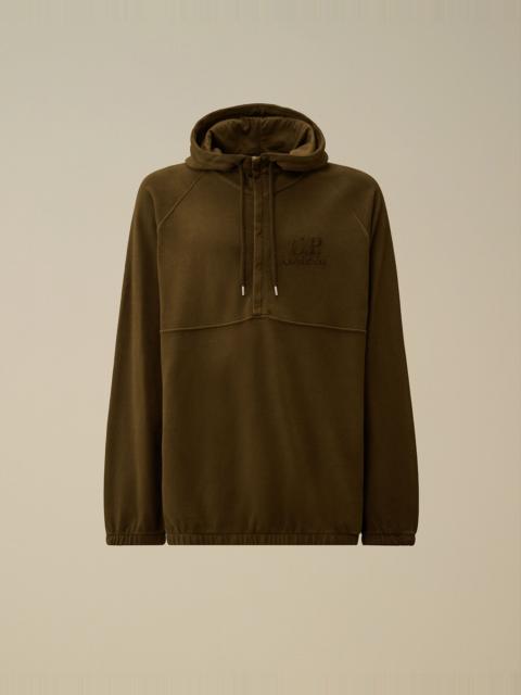 Half zip hooded sweatshirt crafted in Acero Fleece. The sweatshirt features an adjustable hood, and chest embroidered logo detail. Complete with raglan sleeves, elasticated cuffs, and hem. Regular fit. - Adjustable hood - Hidden half zip fastening - Chest embroidered logo detail - Raglan sleeves - Elasticated cuffs and hem - Garment dyed - Regular fit CARE & COMPOSITION Care - Wash max 30°C - Do not bleach - Do not tumble dry - Ironing maximum temperature 150°C - Do not dry clean - Dry flat - Wash separately - Wash with similar colours - Wash inside out - Iron inside out - Do not iron decorations - Do not expose the garment to direct sunlight or artificial light Composition - External fabric: 100% Cotton SIZE & FITTING - Fits true to size, take your normal size - Model is 186 cm-6' 1" / 98-103 cm chest and is wearing a size L PRODUCT PASSPORT PRODUCT - Weaving: Turkiye - Dyeing: Turkiye - Confection: Turkiye PACKAGING - Minimum percentage of recycled materials 70%
