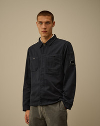 Overshirt crafted in Armored Stretch Sateen, a military-inspired cotton sateen with a soft texture and shiny appearance. The overshirt features C.P. Company’s iconic Lens, a classic collar, and hidden button fastening. Complete with chest snap pockets, adjustable button cuffs, and a snap hem. Garment dyed. Regular fit. - Classic collar - Hidden button fastening - Chest snap pockets - Lens detail - Adjustable button cuffs - Snap hem - Garment dyed - Regular fit CARE & COMPOSITION Care - Wash max 30°C - Mild process - Do not bleach - Do not tumble dry - Ironing maximum temperature 110°C - without steam - Do not dry clean - Line dry in the shade - Wash separately - Remove detachable accessories before washing - Do not expose the garment to direct sunlight or artificial light Composition - External fabric: 98% Cotton, 2% Elastane / Spandex SIZE & FITTING - Fits true to size, take your normal size - Model is 186 cm-6' 1" / 98-103 cm chest and is wearing a size L PRODUCT PASSPORT PRODUCT - Weaving: Turkiye - Dyeing: Tunisia - Confection: Tunisia PACKAGING - Minimum percentage of recycled materials 70%