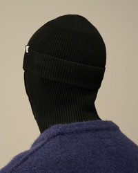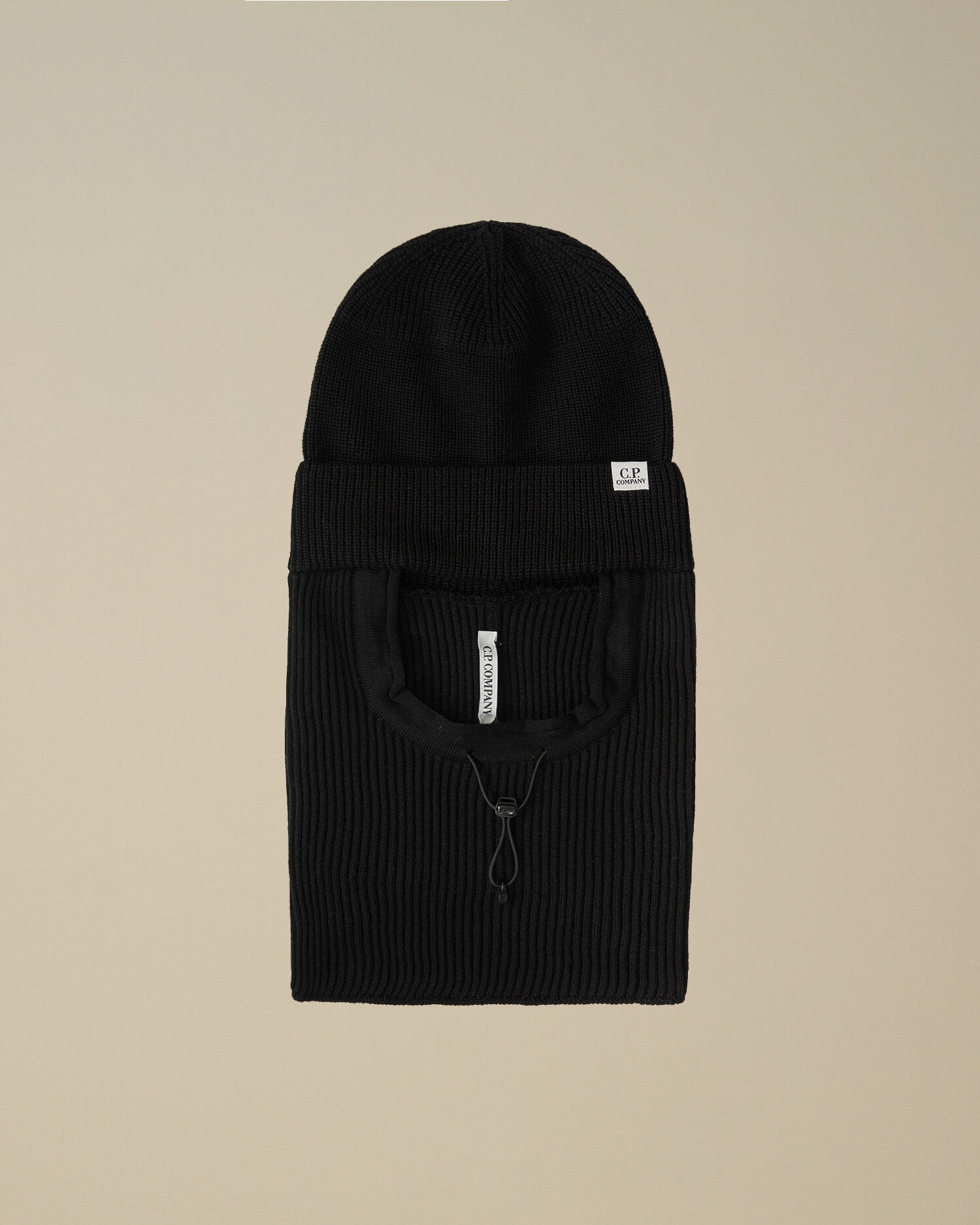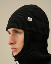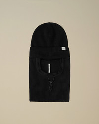Beanie balaclava crafted in extrafine merino wool RWS, combined with recycled polyester GRS. - Turn-up brim with logo tab - Ribbed knit - Adjustable front drawstring CARE & COMPOSITION CARE - Wash max 30°C - Mild process - Do not bleach - Do not tumble dry - Ironing maximum temperature 110°C - without steam - Dry cleaning in tetrachloroethene - mild process - Flat drip dry in the shade - Dry inside out COMPOSITION - External fabric: 55% Virgin wool, 45% Polyester