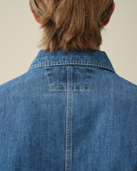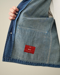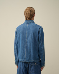 Utility jacket cut with classic collar, full button fastening, and logo detail printed at front. For added functionality, the jacket presents one utility chest pocket, two flap front pockets, and adjustable cuffs. Crafted in Blu fabric, a fine weave 9oz denim gabardine with a waterproof, and dye proof, internal coating. The finished garment is then over-dyed which enhances the unique brilliance of the indigo yarn but at the same time the internal lighter side of the fabric is left untouched. The resin based coating not only adds performance but changes dramatically the hang of the fabric. The completed piece is garment dyed, for an increased chromatic depth and intensity throughout. Regular fit. - Classic collar - Full button fastening - Printed logo detail - Utility chest pocket - Flap front pockets - Adjustable cuffs - Garment dyed - Regular fit CARE & COMPOSITION CARE - Wash max 30°C - Mild process - Do not bleach - Do not tumble dry - Ironing maximum temperature 110°C - without steam - Do not dry clean - Line dry - Do not iron decorations - Fabric may release color - wash separately and inside out - Do not expose the garment to direct sunlight or artificial light COMPOSITION - External fabric: 100% Cotton - Coating: 100% Polyurethanic resin SIZE & FITTING - Fits true to size, take your normal size - Model is 188 cm-6' 2" / 98-102 cm chest and is wearing a size 50