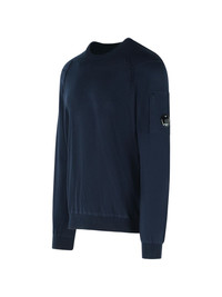 cotton sweater Highlights - Blue - Crew neck - Sleeve pocket - Lens applique - Ribbed hem - Ribbed cuffs - C.p. company suggests removing any detachable accessories before washing. Imported Composition Cotton 100% Washing instructions Read Manufacturer Guidelines