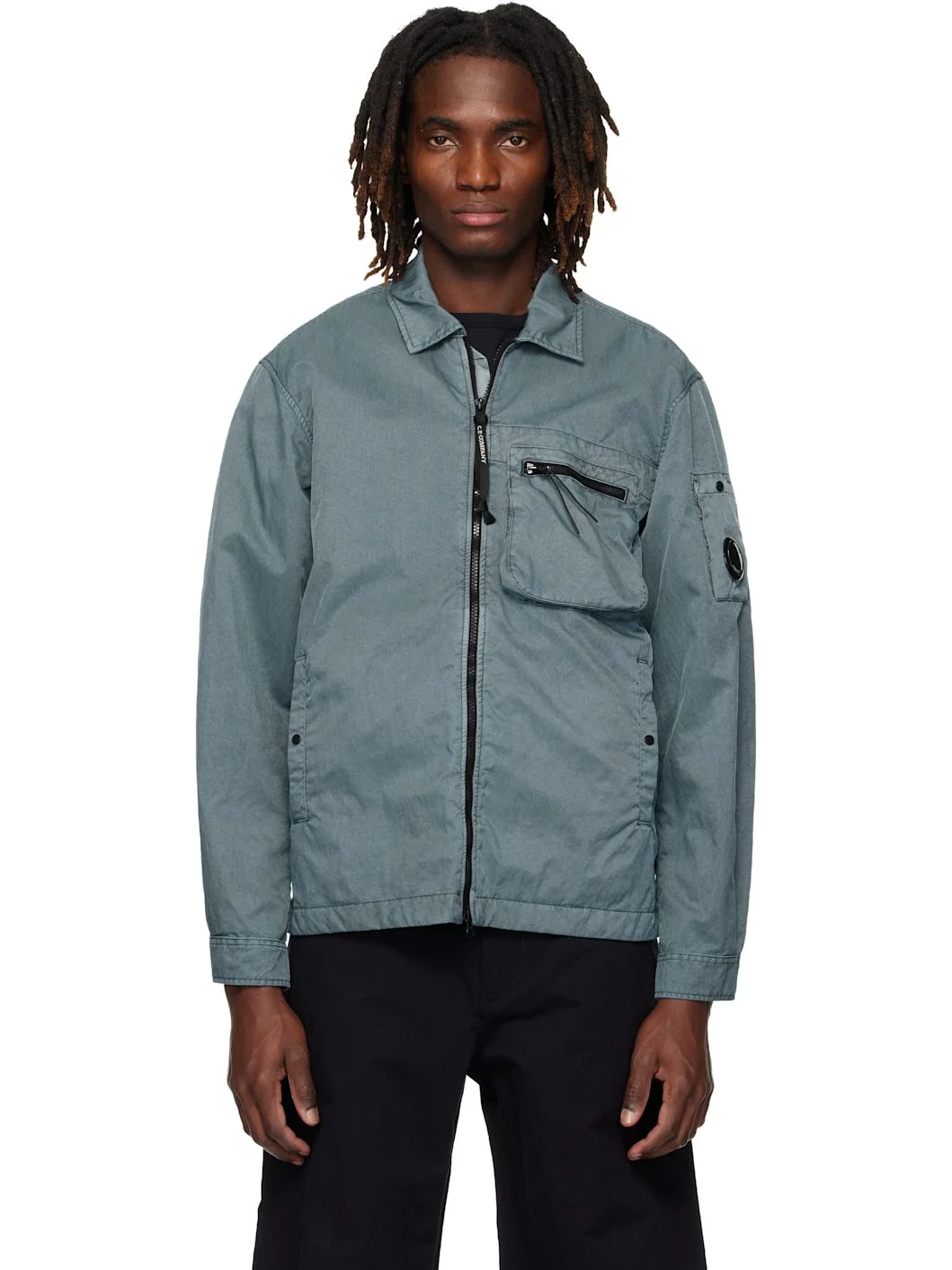 Nylon canvas overshirt. · Pigment-dyed · Spread collar · Two-way zip closure · Zip pocket at chest · Welt pockets at front · Patch pocket and logo-printed lens at sleeve · Adjustable buttoned barrel cuffs Supplier color: Silver blue 100% polyamide. Made in Bulgaria 261357M180025