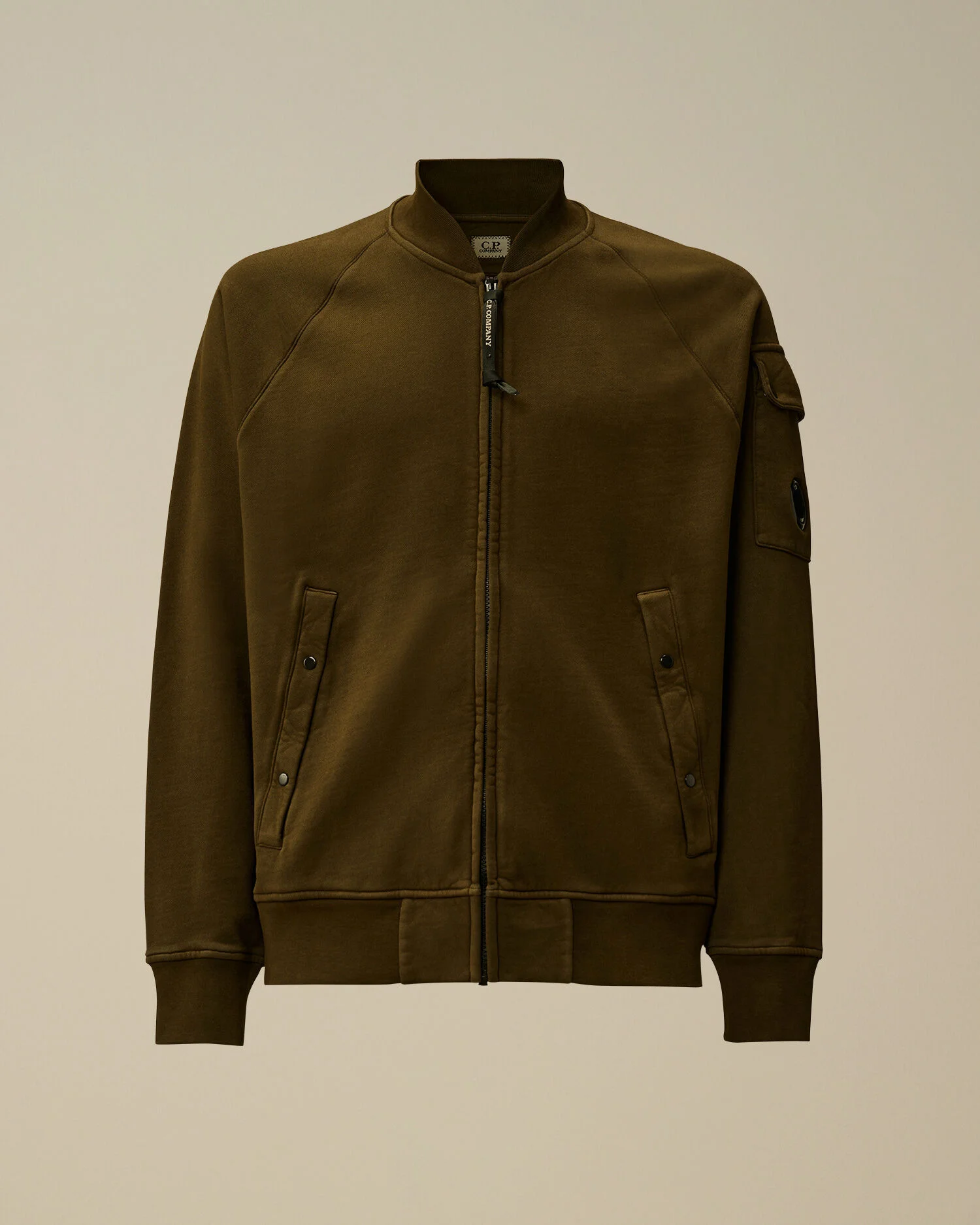 Full zip bomber sweatshirt crafted in brushed and emerized diagonal-weave gauzed fleece. The soft fabric ensures comfort and ease of movement. The sweatshirt features a ribbed neck and C.P. Company’s iconic Lens. Complete with a side snap pocket, ribbed cuffs and hem. Garment dyed. Regular fit. - Ribbed neck - Full zip fastening - Lens detail - Side snap pocket - Ribbed cuffs and hem - Garment dyed - Regular fit CARE & COMPOSITION Care - Wash max 30°C - Do not bleach - Do not tumble dry - Ironing maximum temperature 150°C - Do not dry clean - Flat dry in the shade - Wash separately - Wash with similar colours - Wash inside out - Iron inside out - Do not iron decorations - Remove detachable accessories before washing - Do not expose the garment to direct sunlight or artificial light Composition - External fabric: 100% Cotton SIZE & FITTING - Fits true to size, take your normal size - Model is 186 cm-6' 1" / 98-103 cm chest and is wearing a size L PRODUCT PASSPORT PRODUCT - Weaving: Turkiye - Dyeing: Turkiye - Confection: Turkiye PACKAGING - Minimum percentage of recycled materials 70%