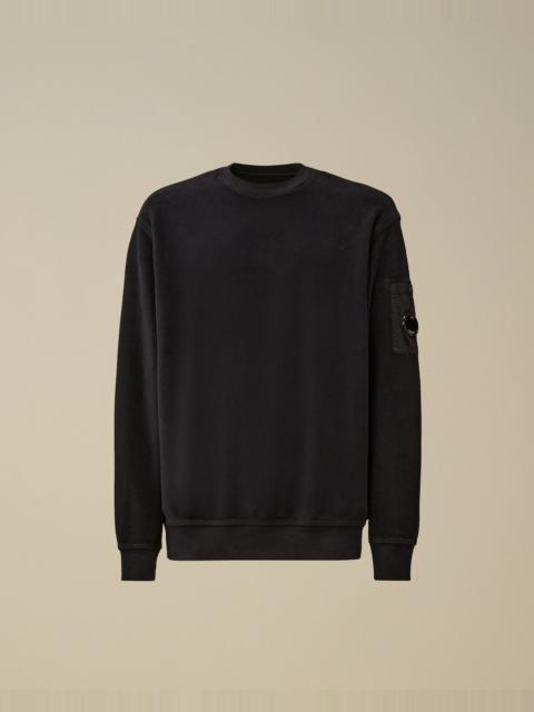 Crewneck sweatshirt crafted in brushed and emerized diagonal cotton with woven twill inserts. The sweatshirt features C.P. Company’s iconic Lens, ribbed cuffs and hem. Garment dyed. Regular fit. - Ribbed crewneck - Lens detail - Ribbed cuffs and hem - Garment dyed - Regular fit CARE & COMPOSITION Care - Wash max 30°C - Mild process - Do not bleach - Do not tumble dry - Ironing maximum temperature 150°C - Do not dry clean - Dry flat - Wash separately - Wash with similar colours - Wash inside out - Iron inside out - Do not iron decorations - Remove detachable accessories before washing - Do not expose the garment to direct sunlight or artificial light Composition - External fabric: 100% Cotton SIZE & FITTING - Fits true to size, take your normal size - Model is 186 cm-6' 1" / 98-103 cm chest and is wearing a size L PRODUCT PASSPORT PRODUCT - Weaving: Turkiye - Dyeing: Turkiye - Confection: Turkiye PACKAGING - Minimum percentage of recycled materials 70%