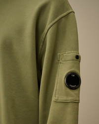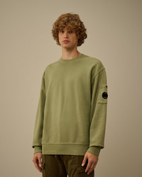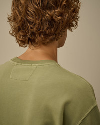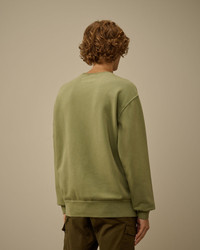 Crewneck sweatshirt crafted in brushed and emerized diagonal-weave gauzed fleece. The soft fabric ensures comfort and ease of movement. The sweatshirt features C.P. Company’s iconic Lens, and ribbed cuffs and hem. The Resist Dyed process uses direct dyes on garments pre-treated with cationic resin, creating an irregular colour effect that enhances texture and details. Regular fit. - Ribbed crewneck - Lens detail - Ribbed cuffs and hem - Resist dyed - Regular fit CARE & COMPOSITION Care - Wash max 30°C - Do not bleach - Do not tumble dry - Ironing maximum temperature 150°C - Do not dry clean - Flat dry in the shade - Wash separately - Wash with similar colours - Wash inside out - Iron inside out - Do not iron decorations - Remove detachable accessories before washing - Do not expose the garment to direct sunlight or artificial light Composition - External fabric: 100% Cotton SIZE & FITTING - Fits true to size, take your normal size - Model is 186 cm-6' 1" / 98-103 cm chest and is wearing a size L PRODUCT PASSPORT PRODUCT - Weaving: Turkiye - Dyeing: Turkiye - Confection: Turkiye PACKAGING - Minimum percentage of recycled materials 70%