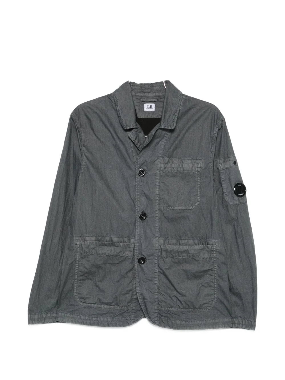 buttoned pocket jacket Highlights - Grey - Button fastening - Front patch pocket - Logo detail - Long sleeves - Point collar Imported Composition Outer: Polyurethane Resin 100%, Cotton 75%, Polyamide 25% Lining: Polyamide 100% Washing instructions Machine Wash